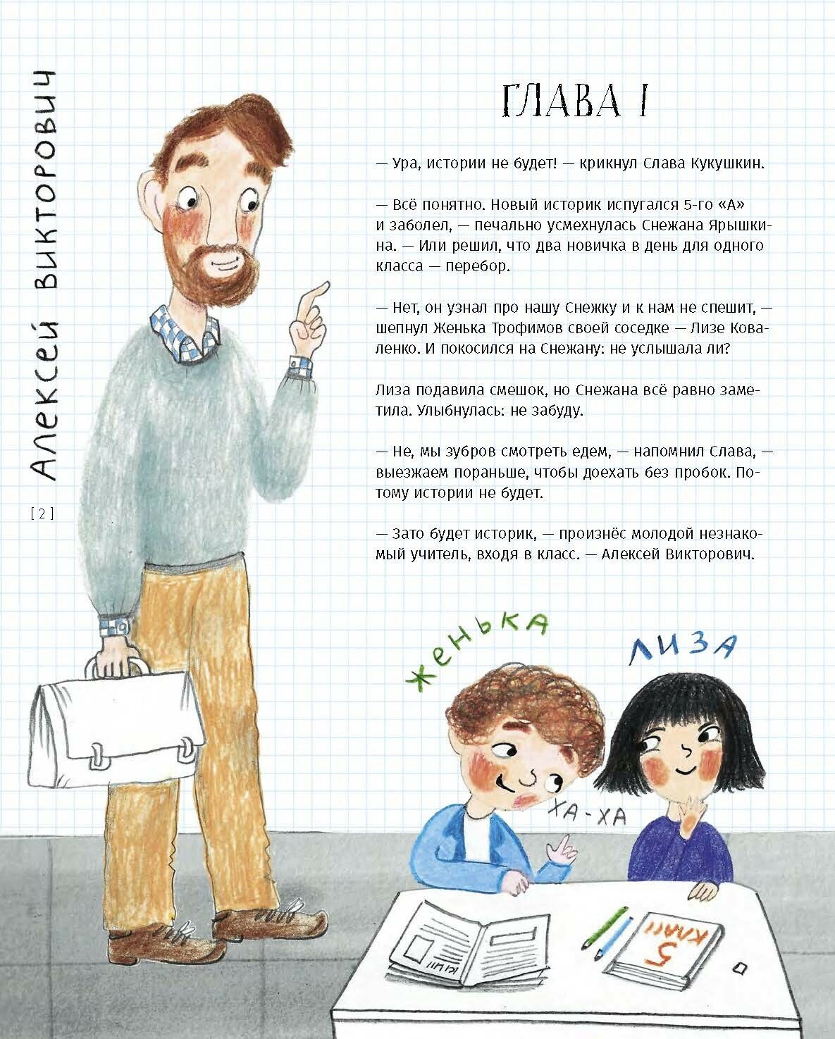 Никогда не любил историю в школе, а заучивание дат, веков казалось занятием совершенно бесполезным и нудным. Еще и преподавали этот предмет в школе скучно и по учебнику, исключительно факты и бубнеж. В общем в восторге от истории я никогда не был, пока не понял, что история может быть интересной, если правильно ее преподнести. Вот например как в этой книге. И текст, и иллюстрации – всё работает на то, чтобы захватить внимание ребенка с первых страниц. А событие, произошедшее в 5 «а», как нельзя лучше показывает, что история не только бесконечные ряды цифр, веков, имен и фамилий. Это прежде всего наша жизнь и все, что окружает нас. И каждый из нас может на нее влиять. В общем книга точно стоит внимания.