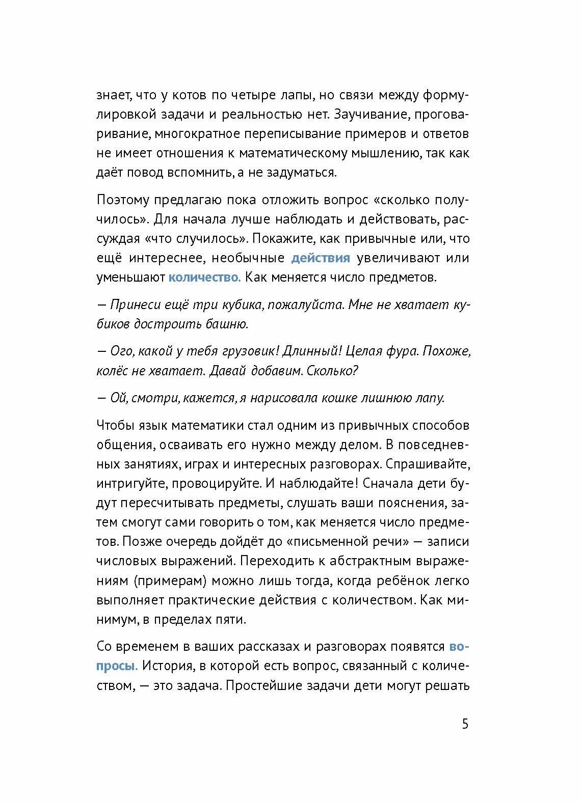 Позаботился автор и о тех, кто помогает малышу: во «взрослой» части книги вы найдёте ответы на возможные вопросы и получите вдохновляющую поддержку в деле обучения математике.