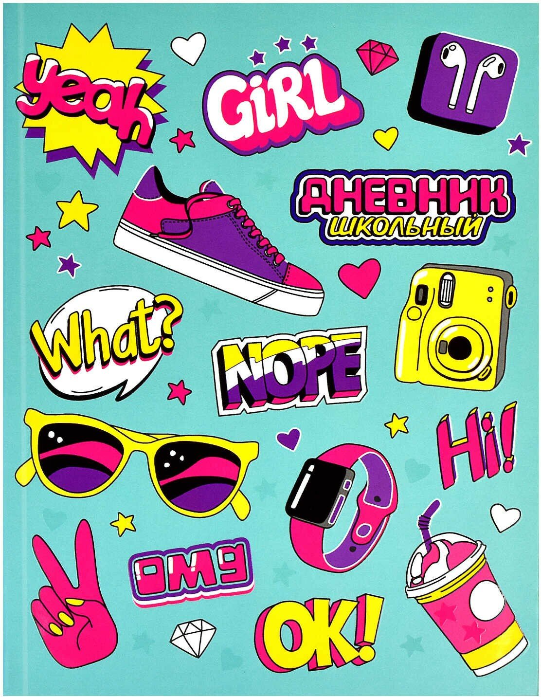 Дневник школьный хайп. обложка интегральная (мягкая), А5+, 48 л, конгрев, выборочный УФ-лак, матовая ламинация, печать в одну краску, универсальная шпаргалка.