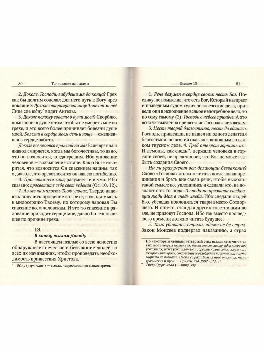 Книга будет полезна и назидательна всякому христианину: в ее содержании он сможет найти наставления, утешения и советы применительно к самым разным своим состояниям, внешним и внутренним. "В псалмах познаем движения души нашей, и все они как бы о нас изречены и суть как бы собственные наши слова, служащие...к исправлению собственного нашего жития", - и в этом их уникальность.