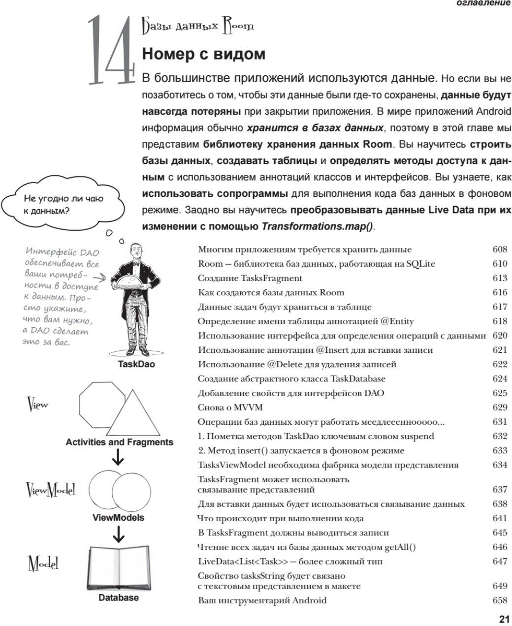 Эта полностью переработанная и обновленная книга поможет сразу приступить к работе. Вы на практике узнаете, как структурировать приложение, создавать гибкие и интерактивные пользовательские интерфейсы, сохранять информацию в базе данных и использовать новейшие возможности Android Jetpack и Jetpack Compose. Все, что вам нужно для успешного старта - это немного базовых знаний о языке Kotlin.