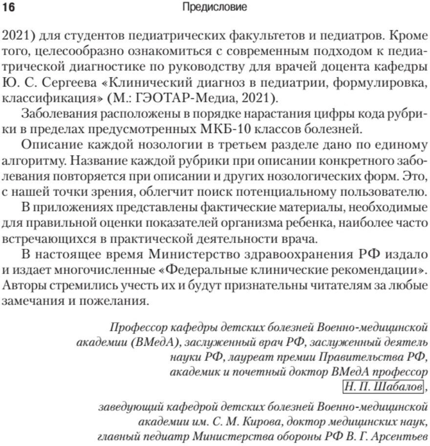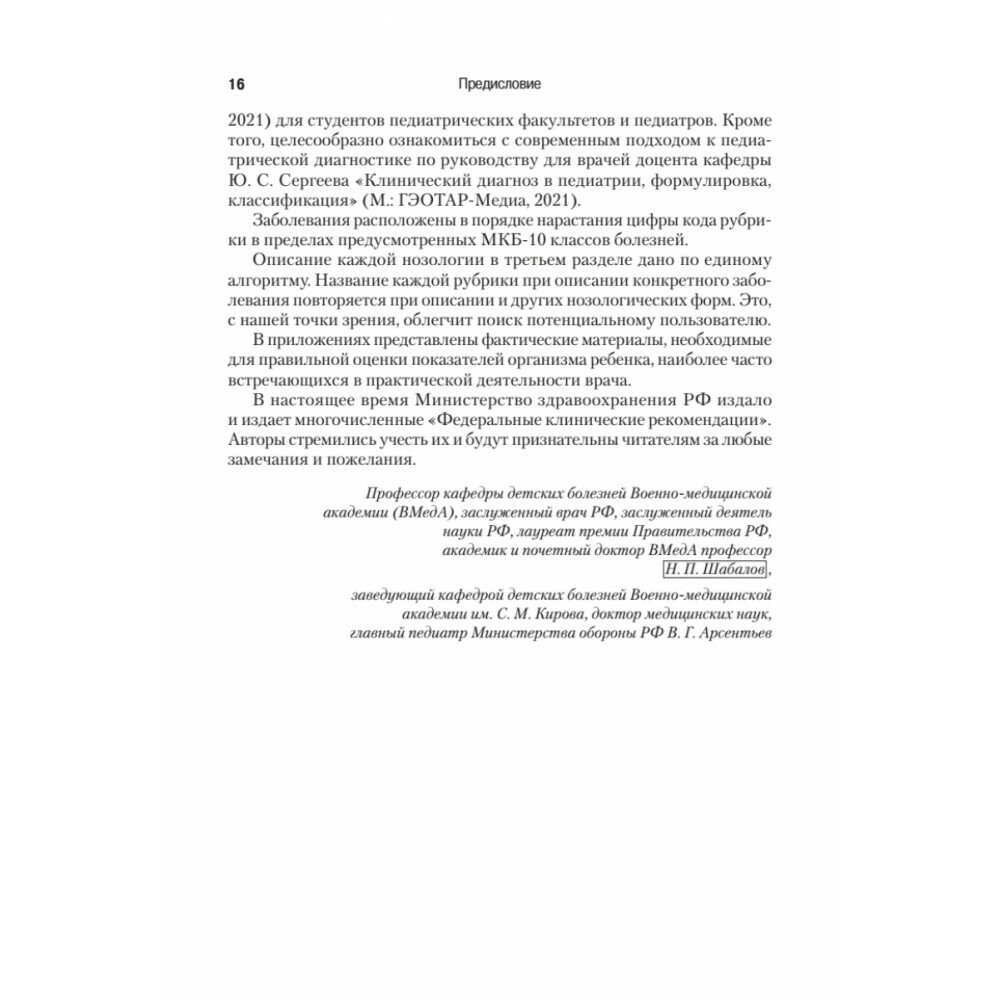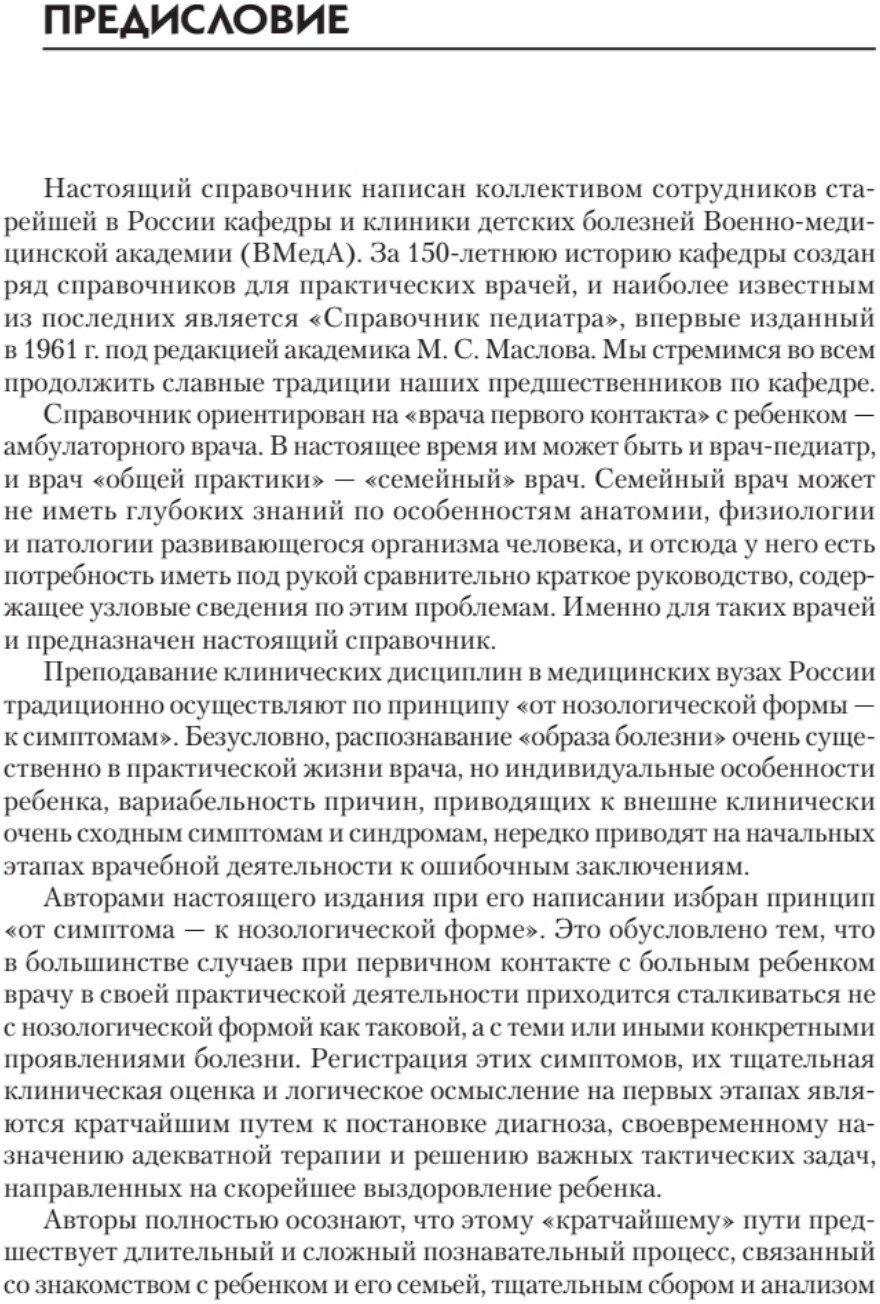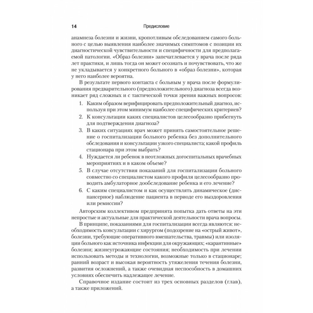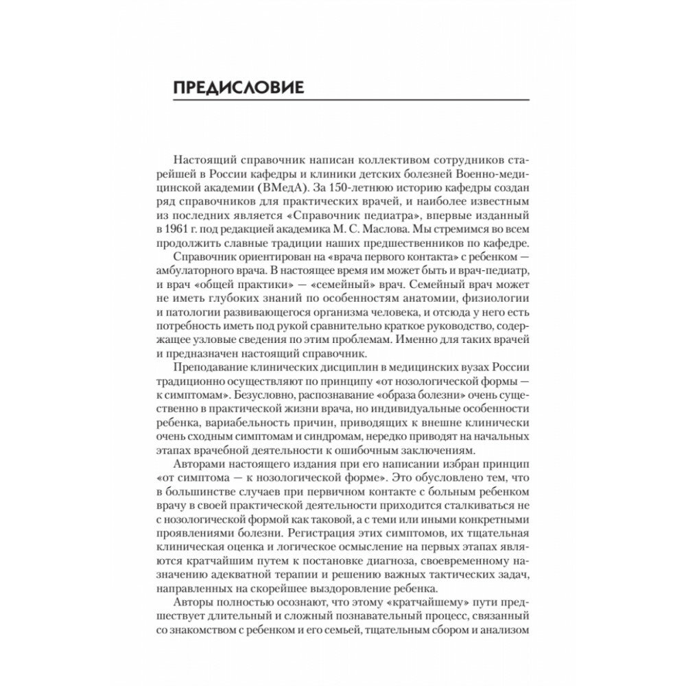 Пятое издание справочника (предыдущие вышли в 2005, 2007, 2013, 2018 гг.) переработано и дополнено. В книге затронуты все основные вопросы современной педиатрии; освещены особенности физиологии развития ребенка, организации и оказания амбулаторно-поликлинической помощи детям; описаны симптомы, встречающиеся в клинической практике, с указанием причин их появления; приведены необходимые сведения о многочисленных (свыше 300) нозологических формах патологии детского возраста, ранжированных в соответствии с МКБ-10.