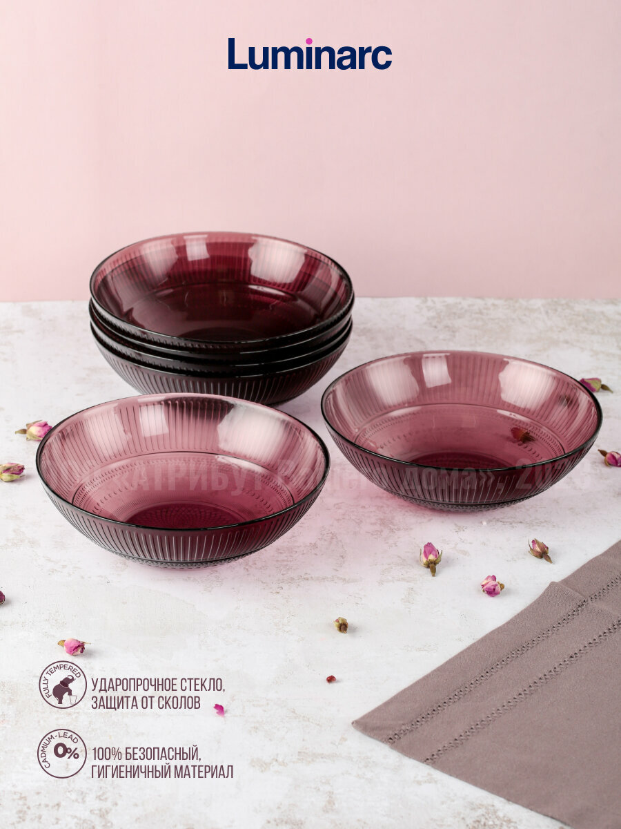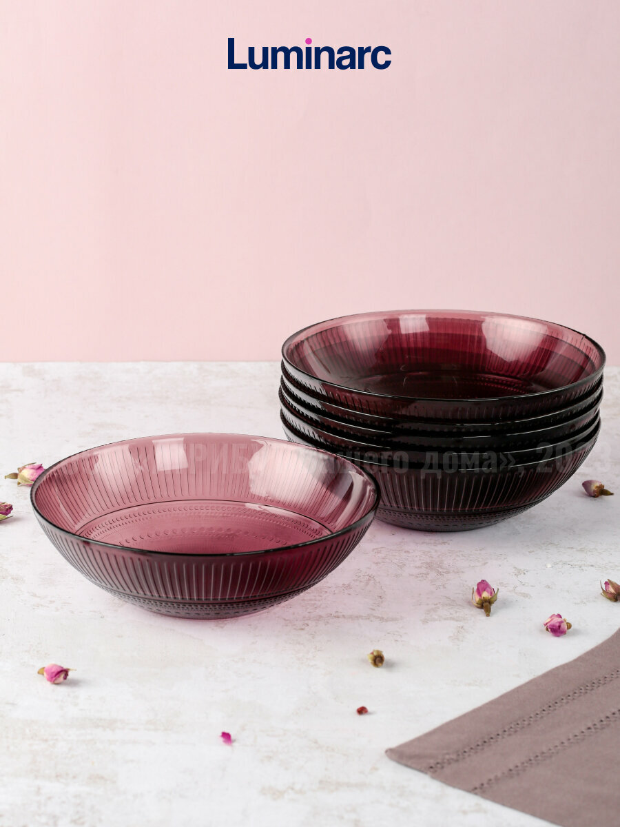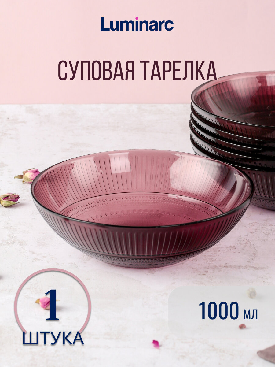 Суповая тарелка Louison Lilac изготовлена из высококачественного натрий-кальций-силикатного стекла. Тарелка выполнена в круглой форме, фиолетового цвета. Тарелка Louison Lilac будет отлично смотреться как на повседневном, так и на праздничном столе. Тарелку Luminarc можно мыть в посудомоечной машине и использовать в СВЧ.