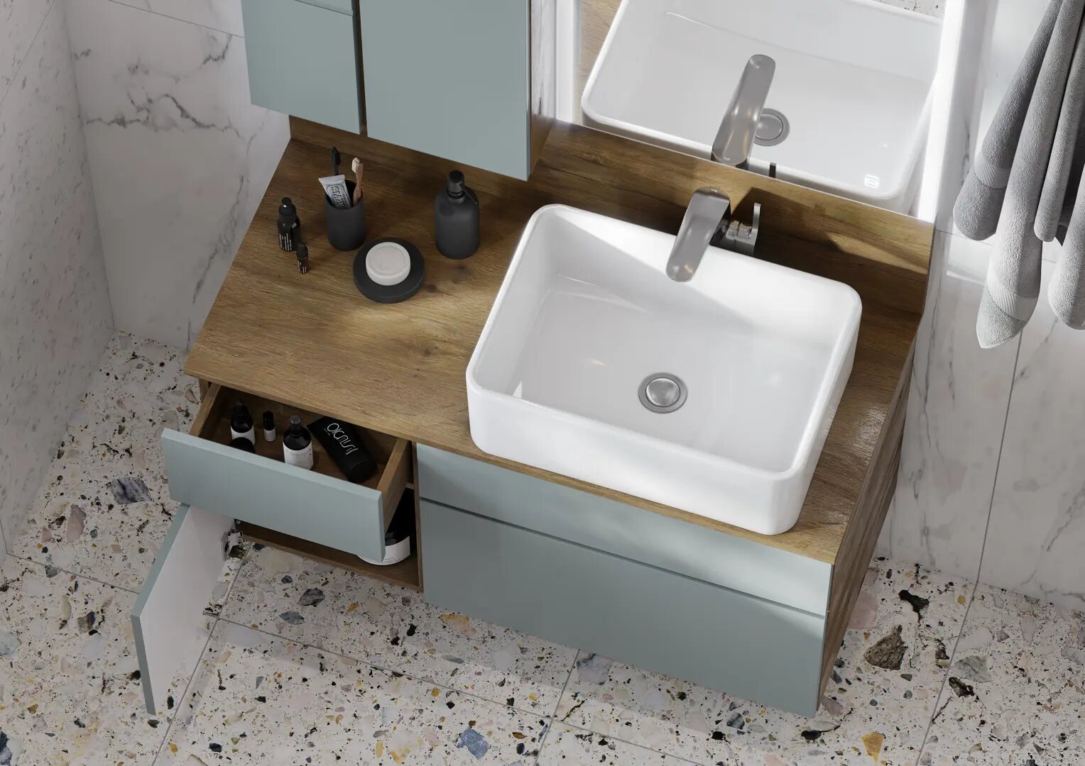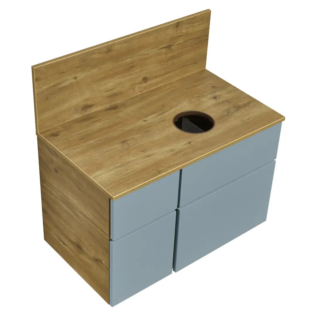 Столешница из влагостойкой ламинированной ДСП для тумбы AQUATON Мишель 80 1A277003MIDR0 выполнена в натуральном декоре дуб рустикальный и идеально сочетается с насыщенным оттенком фасадов в пленке фьорд.В конструкции столешницы предусмотрено отверстие для установки раковины и подключения сливной фурнитуры. Отверстие смещено от центра в правую сторону, что в свою очередь позволяет использовать оставшееся пространство столешницы для размещения ванных принадлежностей и прочих необходимых аксессуаров.Импровизированная задняя стенка столешницы позволит защитить стены от брызг и попадания влаги за тумбу, тем самым избежать появления неприятных запахов и продлить срок эксплуатации.Комплект из столешницы и тумбы может комплектоваться несколькими видами накладных раковин; Roca Mila (32700B000), Roca Mila (32700C000), Santek Одри Soft (1WH501709) и Santek Одри Round (1WH501710) и Aquaton Лола 60 (1A73313KLK010).Столешница и задняя панель не являются единым изделием и устанавливаются независимо друг от друга.Установка раковины на столешницу осуществляется без применения дополнительных кронштейнов, путем приклеивания с помощью герметика.