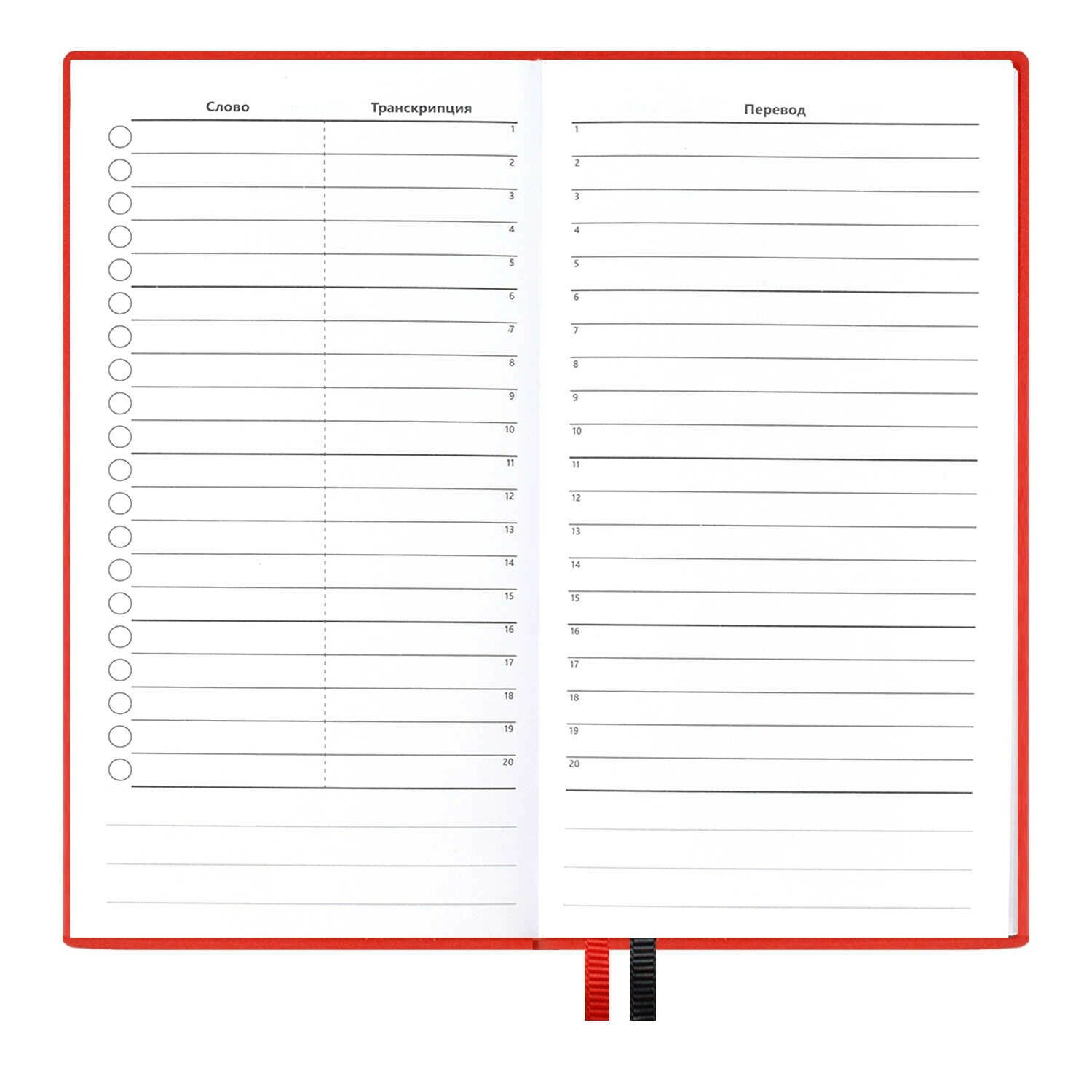 Словарь для записи иностранных слов Красный 86х164 64 листа Феникс+
