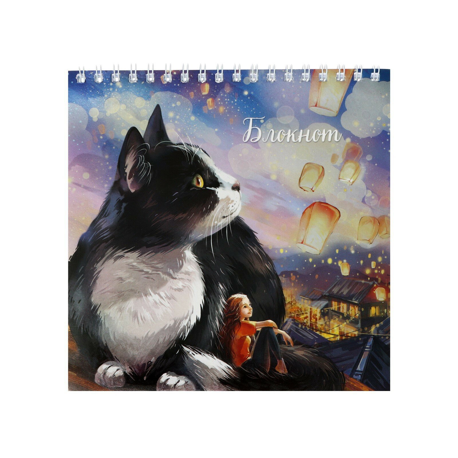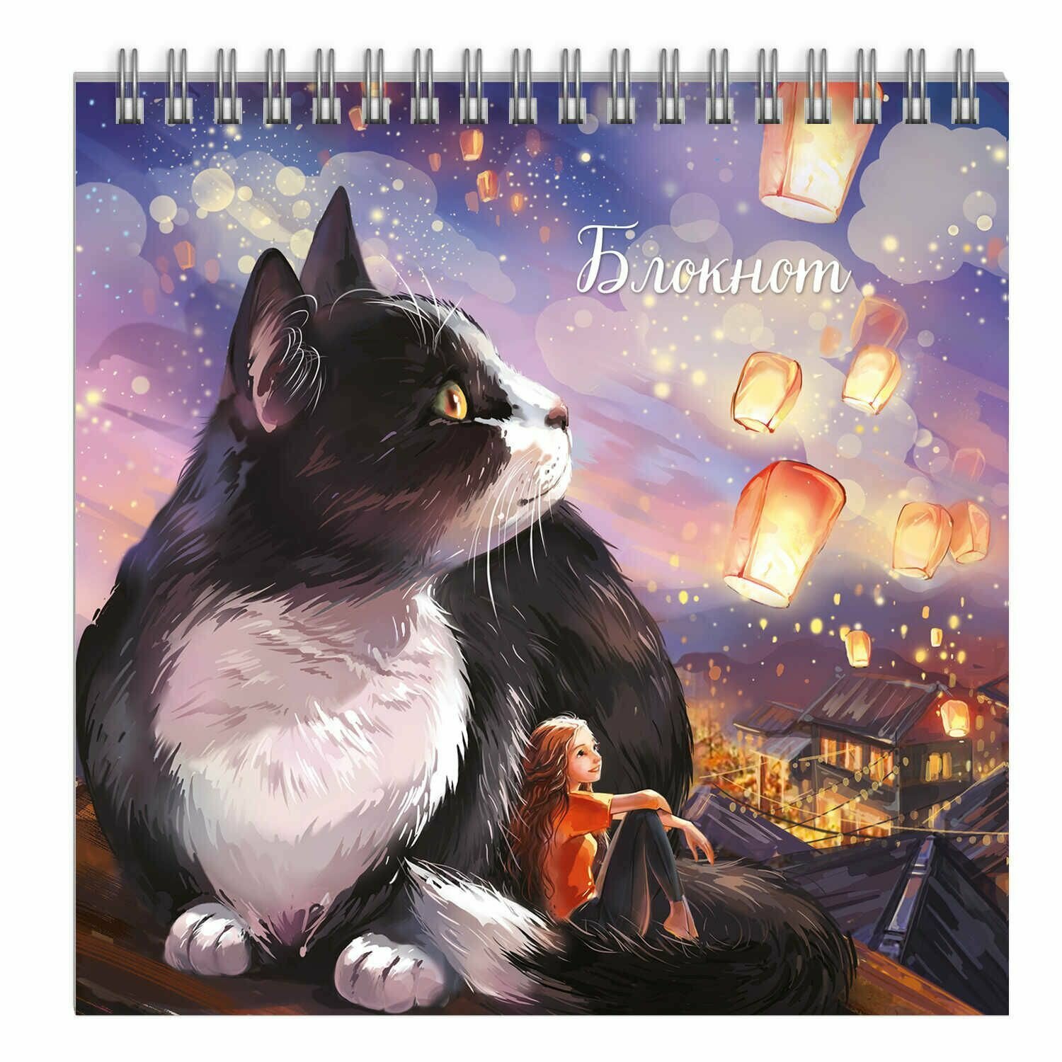 Блокнот Кот с фонариками 16*16 60 листов клетка Феникс+