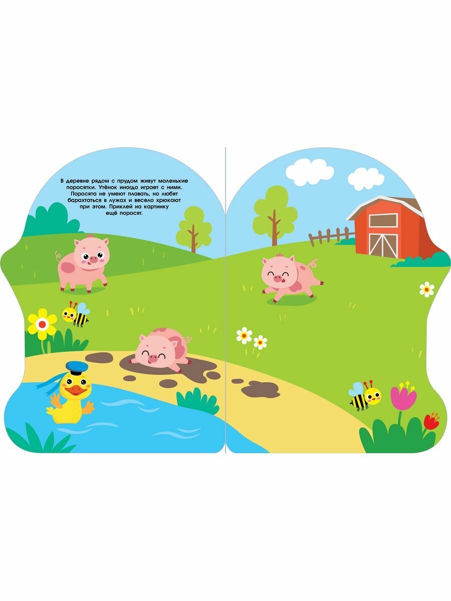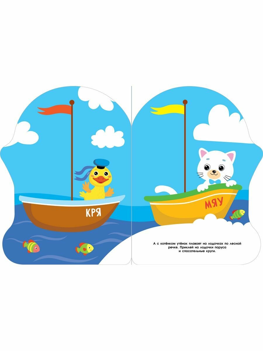 Маленький утенок приглашает вас в гости. Познакомьтесь с его друзьями и узнайте, что он любит больше всего. Приклейте наклейки и сделайте разноцветные картинки ещё красивее!