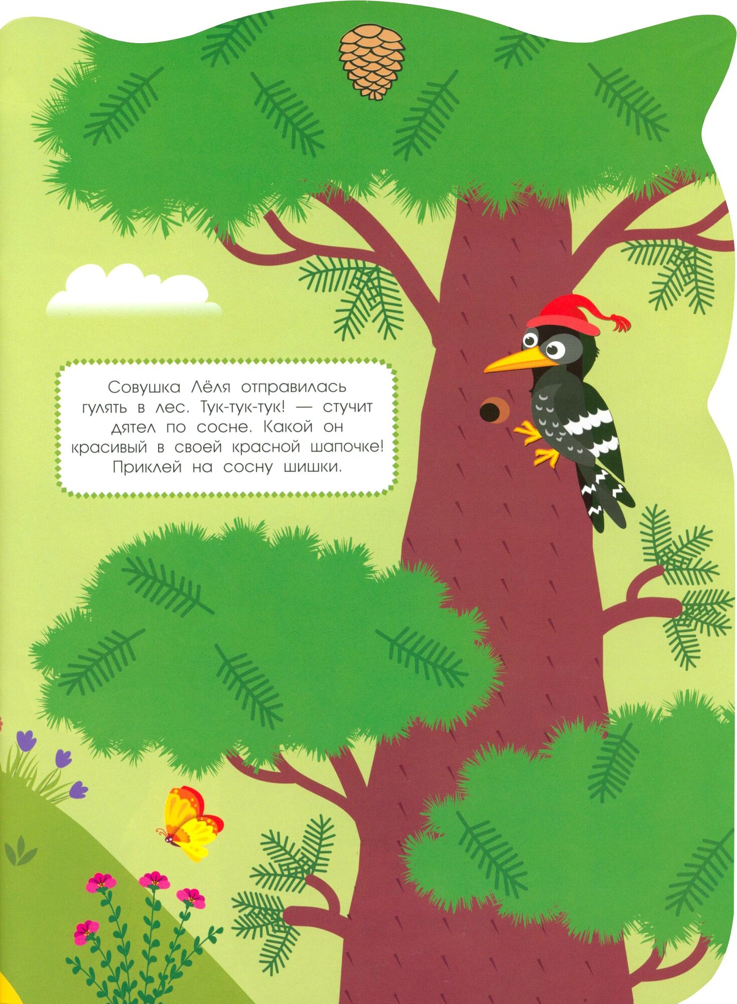 Совушка Лёля - настоящая красавица. У неё такие большие круглые глаза! Она может вертеть головой во все стороны и очень хорошо видит в темноте. И вот как-то раз Лёля решила выяснить, кто в лесу самый красивый. Давай отправимся вместе с ней и посмотрим, что же узнает Лёля. А с наклейками путешествовать будет ещё интереснее.