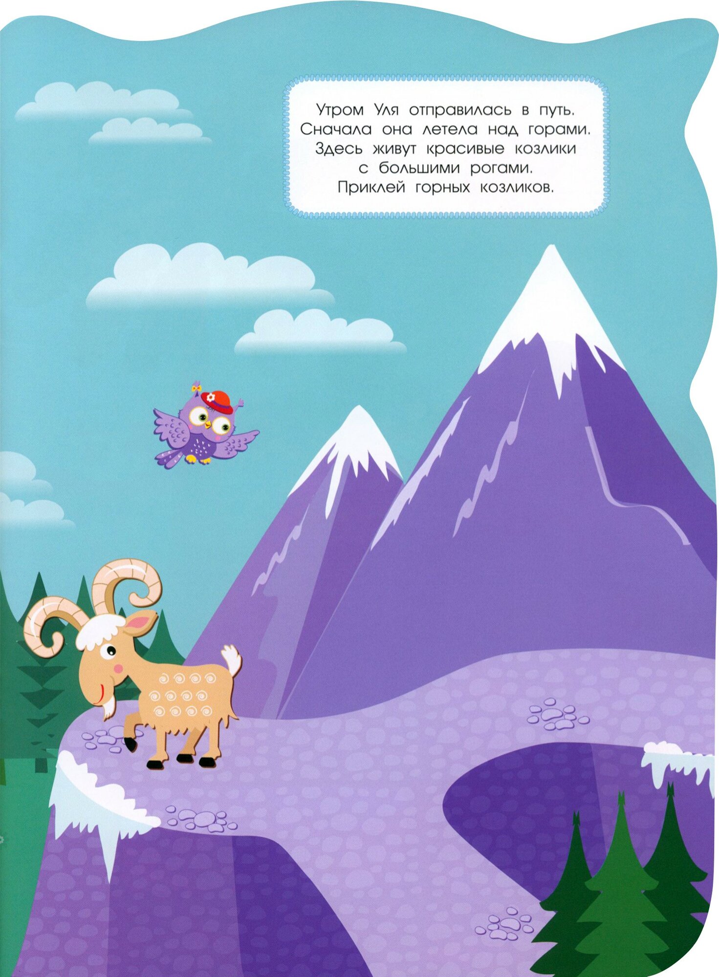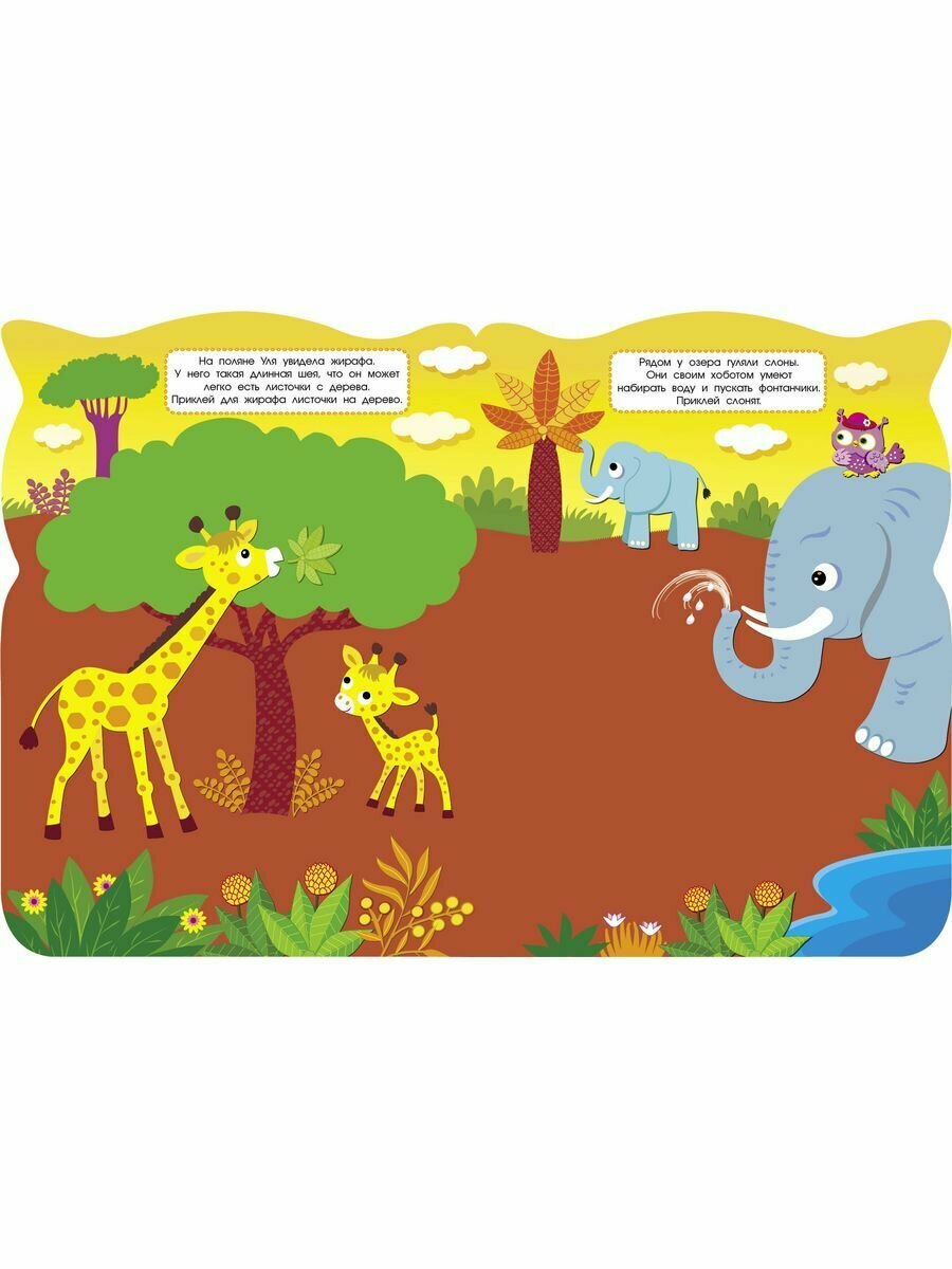 Совушка Уля живёт на опушке большого леса, в дупле старого дуба. Она очень любопытная, и ей не сидится дома. Сегодня она решила отправиться в жаркие страны. Давай отправимся вместе с ней и посмотрим, кто встретится ей на пути. А с наклейками наше путешествие будет ещё интереснее.