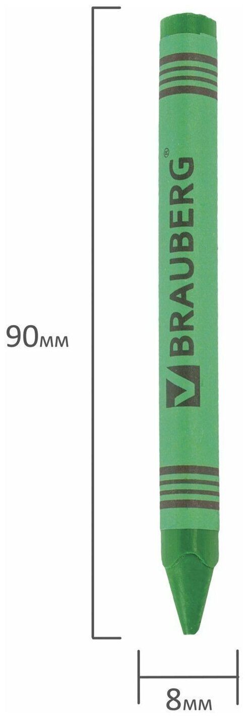 Восковые мелки BRAUBERG идеально подходят для детского творчества. Предназначены для рисования на бумаге любого типа, а также дереве, картоне и стекле. Не пачкают руки, благодаря индивидуальной бумажной обертке каждого карандаша.