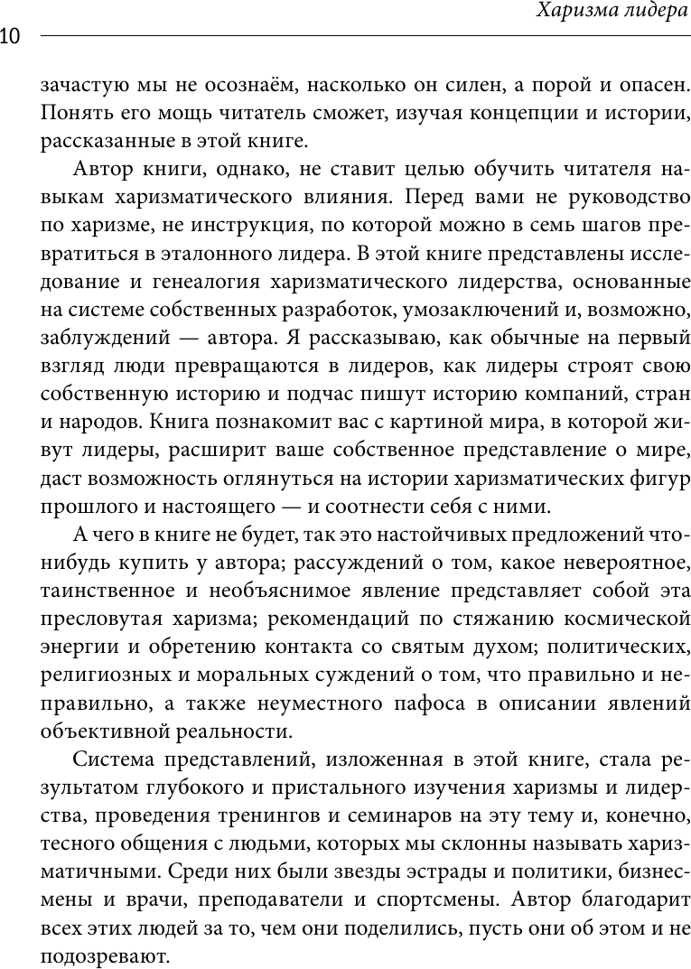 Потому что эта книга — попытка развеять дым и спецэффекты вокруг явления харизмы, отделить его "механизм" от мифов, и культурных наслоений. Это попытка осмыслить, для того чтобы использовать.