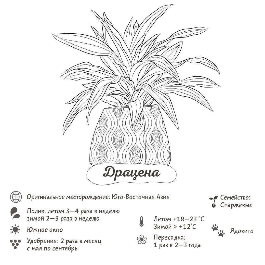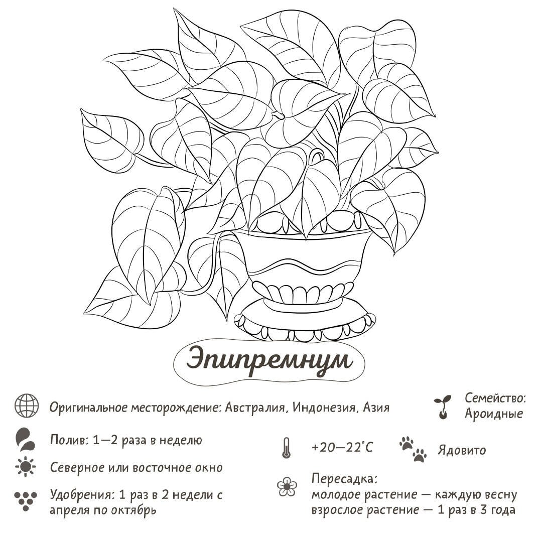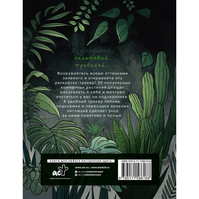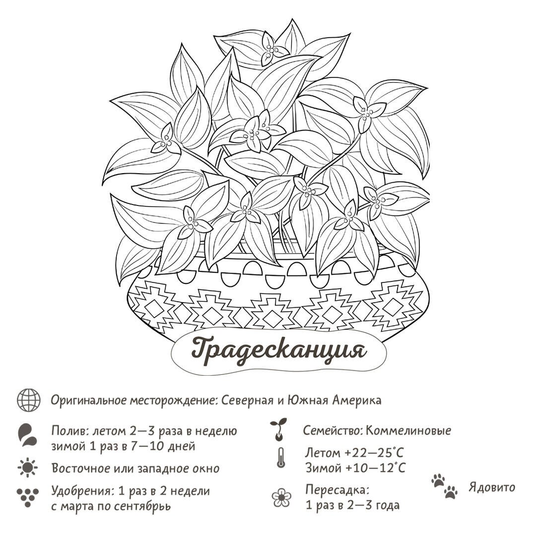 Раскрашивайте любимые растения, попутно узнавая множество интересных фактов о них! Раскраска-трекер включает иллюстрации 30 популярных комнатных растений с подробными описаниями к ним, а также таблицами для самостоятельного заполнения. Так вы точно не пропустите подкормку, пересадку и полив! Вы научитесь правильно заботиться о растениях, которые уже есть в вашей квартире, и сможете приглядеть себе нового зеленого питомца – кактус, фикус, спатифиллиум, алоэ и др. А сам процесс раскрашивания позволит расслабиться и отвлечься от повседневных забот. Позвольте вечнозеленым садам расцвести не только в вашей душе, но и в вашем доме!
