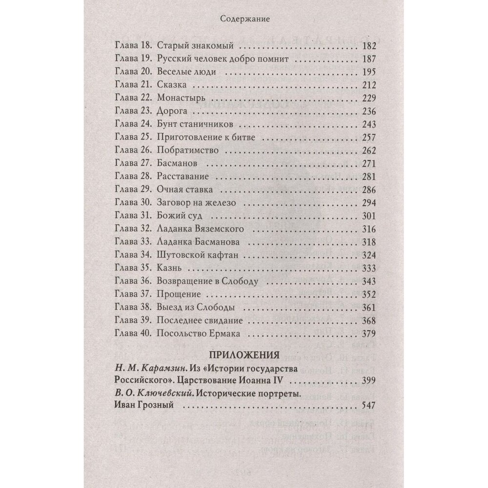 Произведение сопровождается публикацией отрывков, посвященных эпохе Ивана Грозного, из трудов выдающихся русских историков Н. М. Карамзина и В. О. Ключевского.
