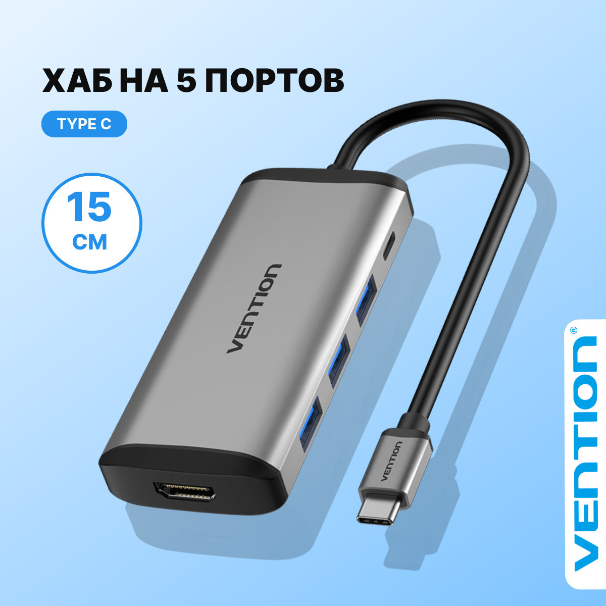 Концентратор Vention USB Type C 5 в 1 CNBHB