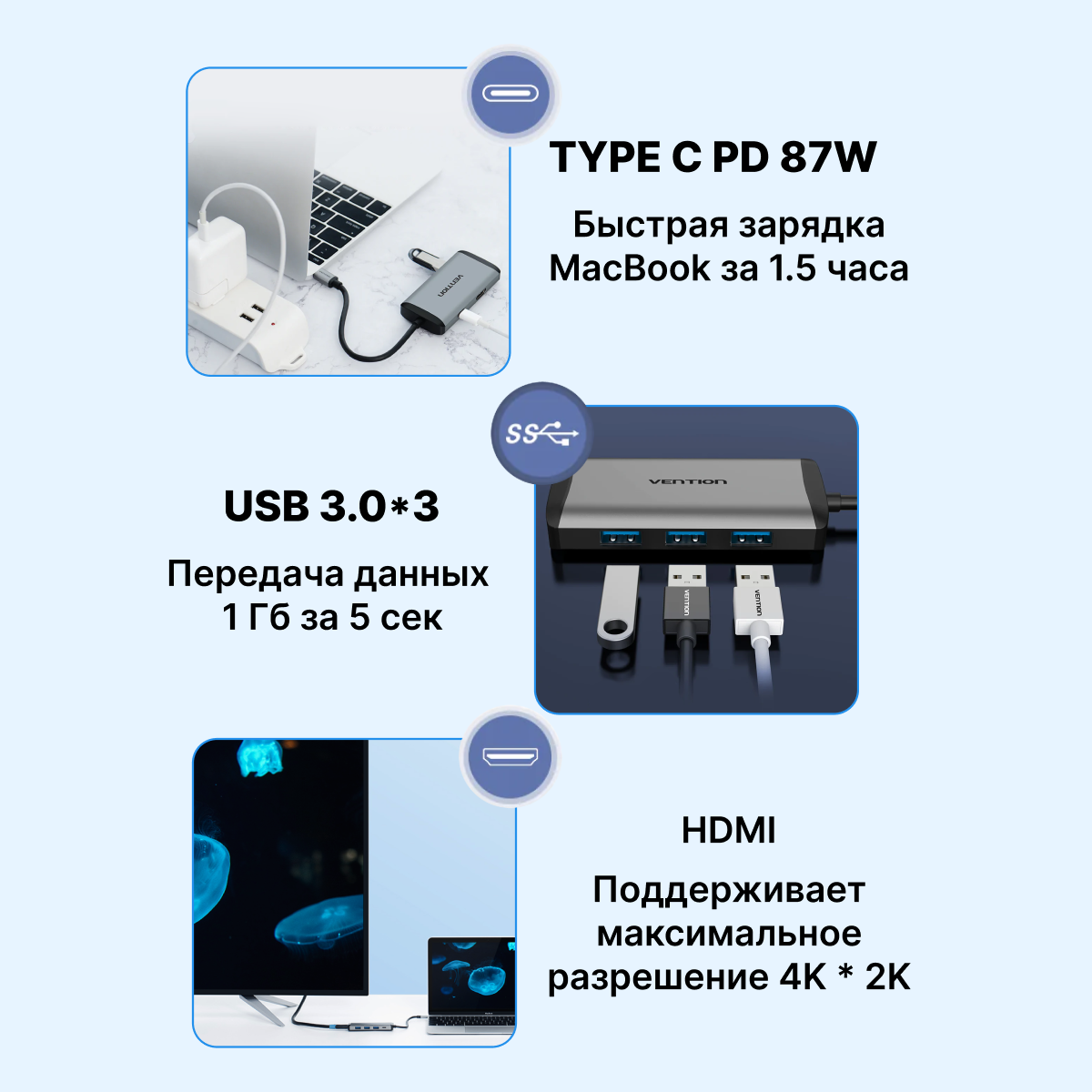 USB-концентраторы для мультимедиа Vention