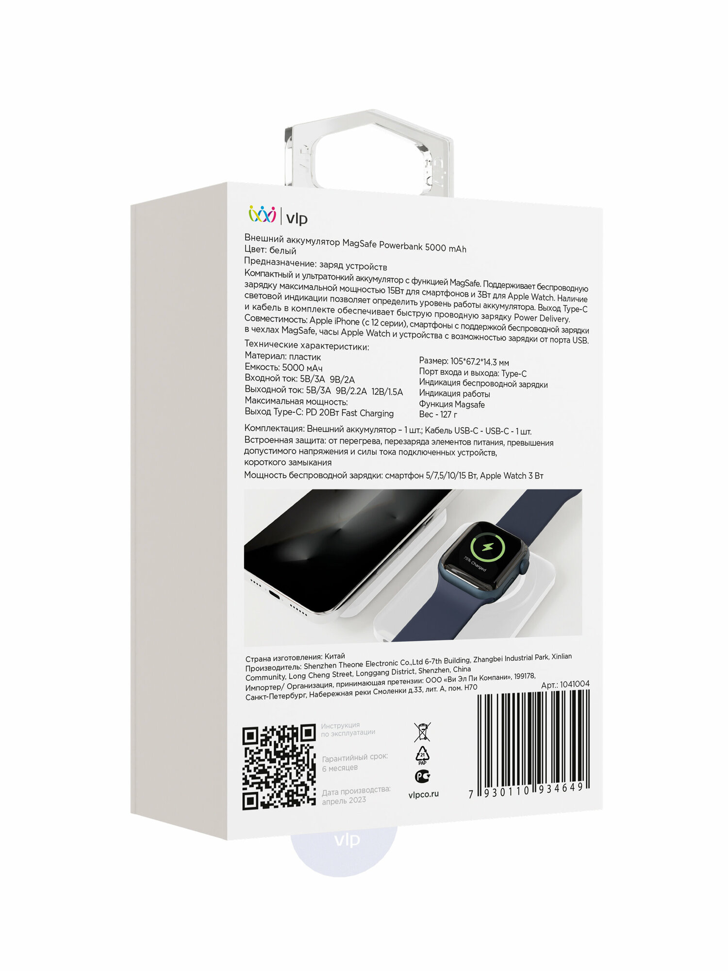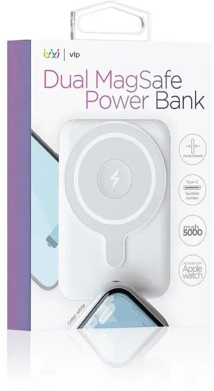 Внешний аккумулятор VLP Dual Magsafe PowerBank 5000 mAh 3A USB-C белый Dual Magsafe 5000 мАч