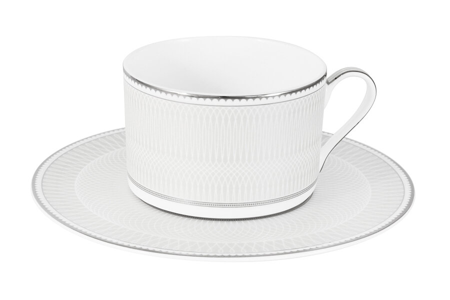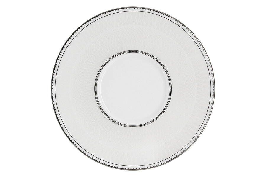 Серебряная резная отводка по краю придает предметам коллекции благородный вид.