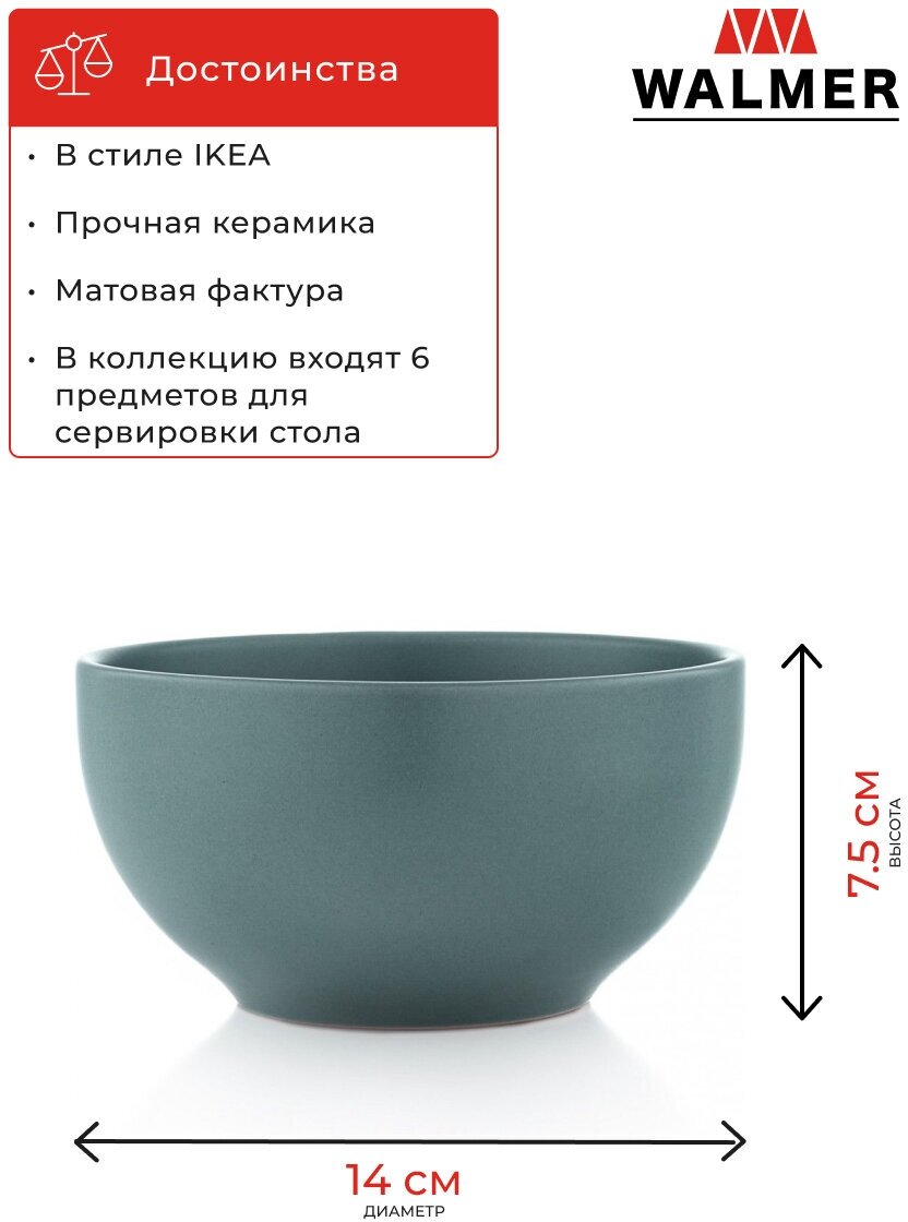 Миска WALMER Global W37000120 14см керамика зеленый
