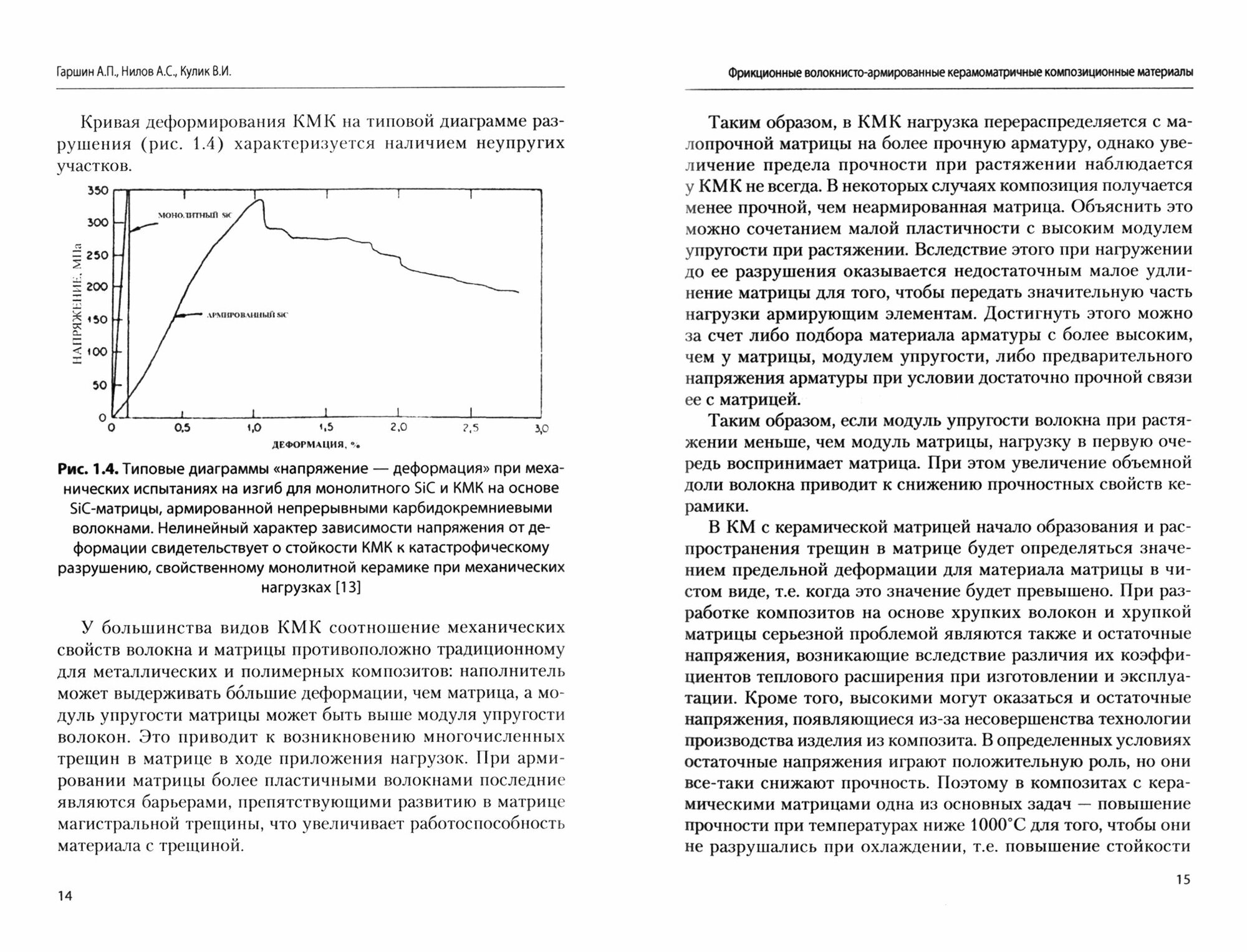 В монографии приведены обобщающие результаты анализа основных особенностей волокнисто-армированных композиционных материалов с керамической матрицей и используемых для их армирования волокнистых наполнителей. Рассмотрены основные технологические методы получения керамоматричных композитов, основанных на твердо-, газо- и жидкофазных процессах. Приведены результаты оценки текущего состояния и перспектив развития фрикционных элементов в тормозных системах высокоэнергетичной транспортной техники. Рассмотрены основные направления повышения коррозионно-, жаро- и износостойкости композиционных материалов с керамической матрицей, а также оценка физико-механических и теплофизических характеристик композиционных материалов с керамической матрицей, предназначенных для работы в условиях высоких механических и температурных нагрузок и абразивного износа. Даны рекомендации по подбору пар трения для тормозных дисков из композиционных материалов с керамической матрицей.