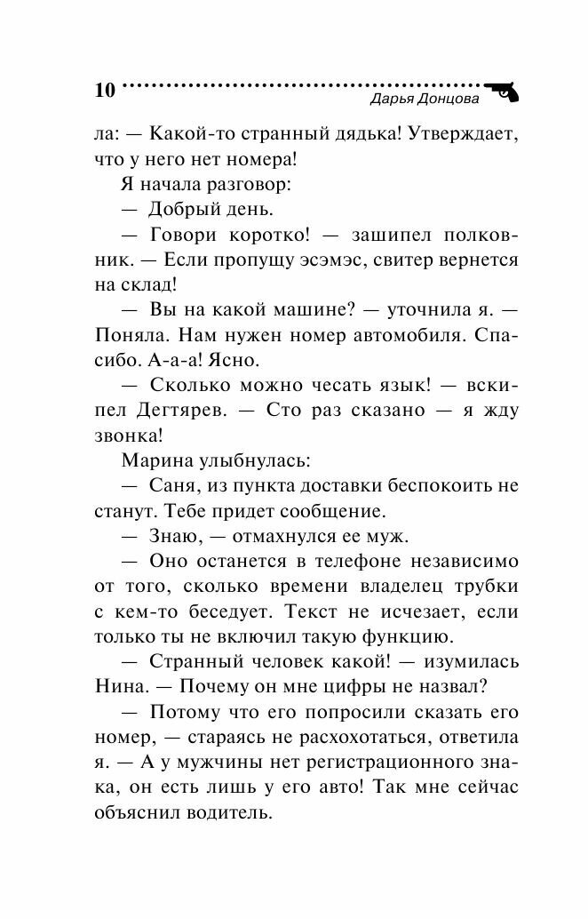 -  Джини- 20 августа 20235/5 Бредовый, но в тоже время интересный детектив. Я не часто читаю книги Дарьи Донцовой, но иногда они проскальзывают в мою читательскую жизнь. Сюжет детектива, я бы не назвала правдоподобным по множество причин, начиная с мотива присватается и заканчивая поисками и поимки преступника, но все же не смотря на такую нелепость эта книга притягивает и её невозможно не дочитать пока не узнаешь развязки.