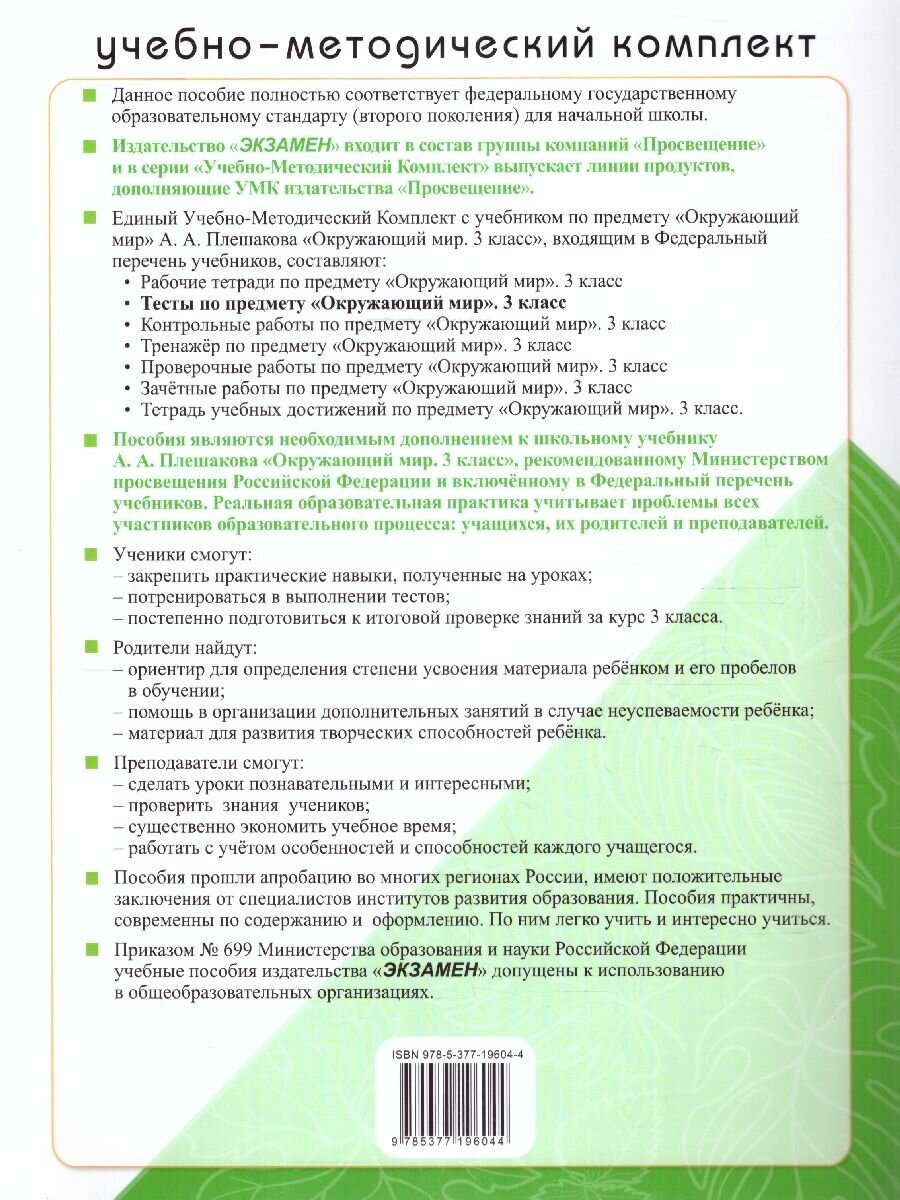 Тесты по предмету "Окружающий мир". 3 класс. К учебнику А.А. Плешакова (Тихомирова Елена Михайловна); Экзамен, 2024