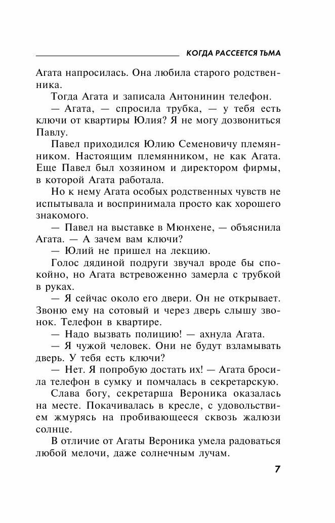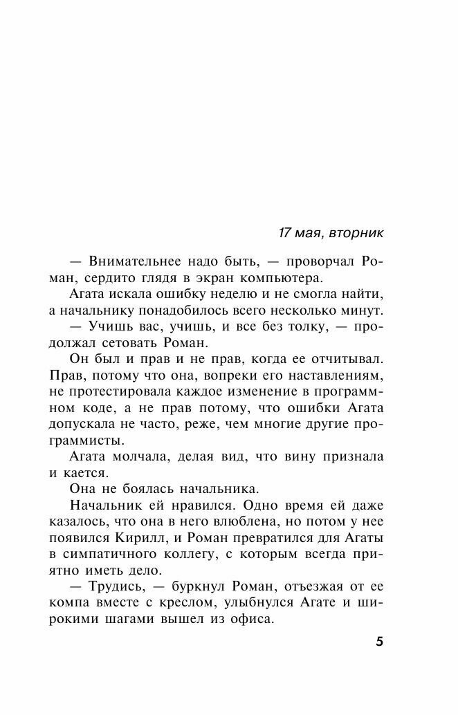 Агата живет и работает в огромном чужом городе, где у нее есть только один дальний родственник. Его внезапная смерть девушку крайне пугает: оказывается, он умер от передозировки сильнодействующего лекарства, которое никогда не принимал. У Агаты нет сомнений, что его отравили. Вокруг нее самой тоже происходит что-то странное: возвращается и опять исчезает бойфренд, о котором девушка уже и думать забыла, внезапно начинается новый роман. Но Агата не оставляет попыток разоблачить убийцу своего родственника. А тот тем временем находит новую жертву…
