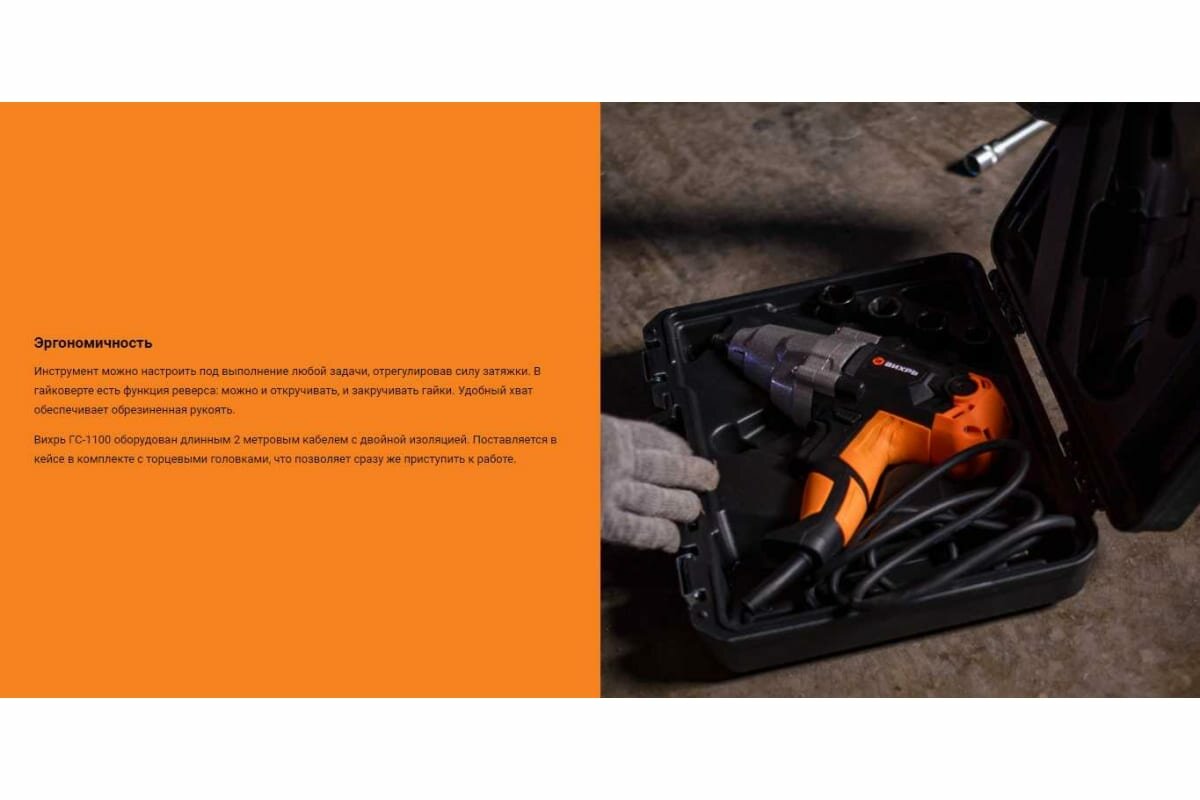 Ударный гайковерт Вихрь , патрон: квадрат 1/2", питание от электросети 220В, (кейс в комплекте) (72/24/2)
