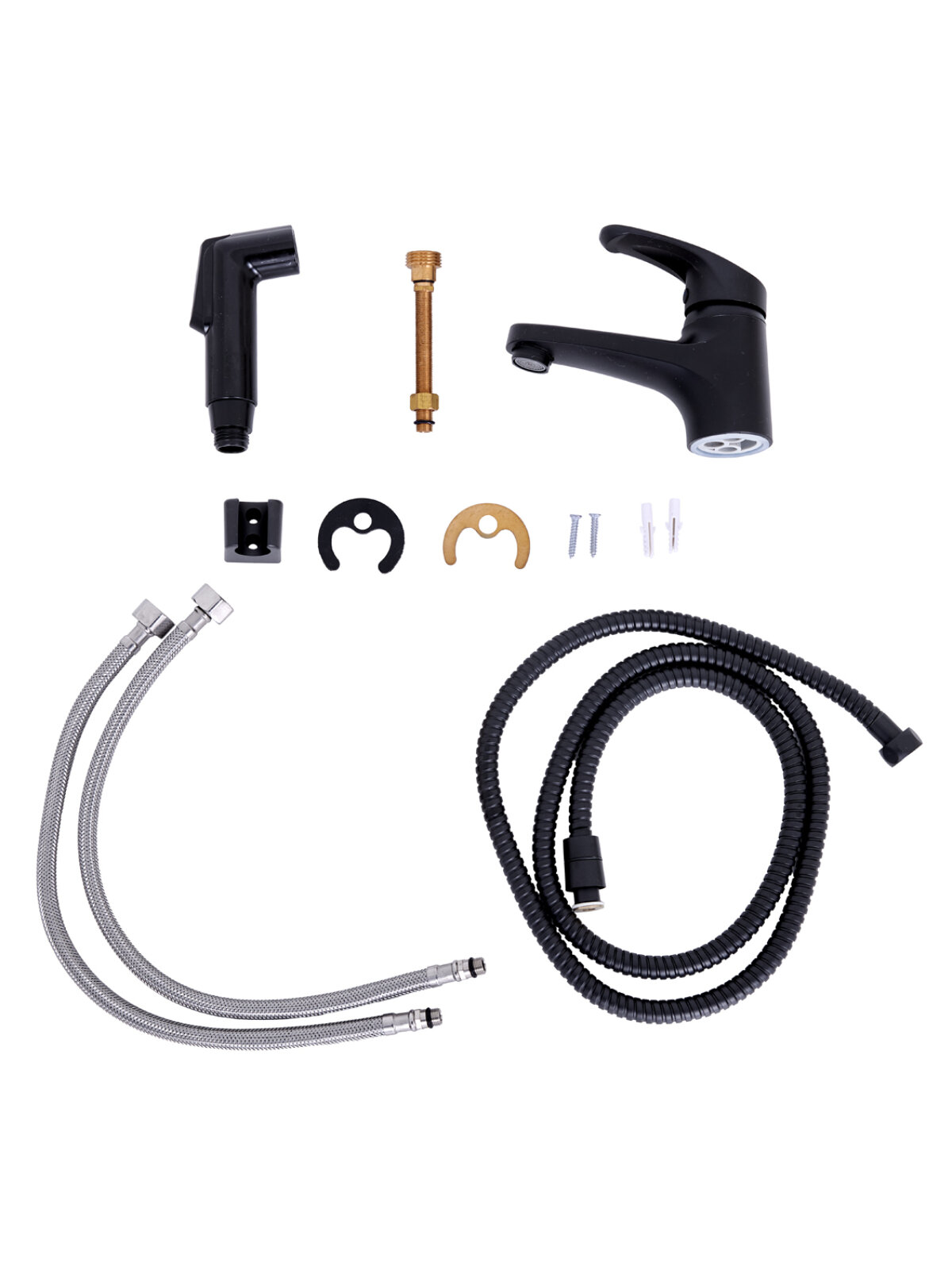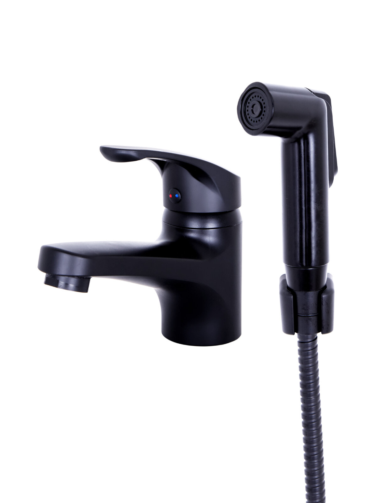 Смеситель для раковины Orange OneLife P01-022b с гигиеническим душем Черный матовый