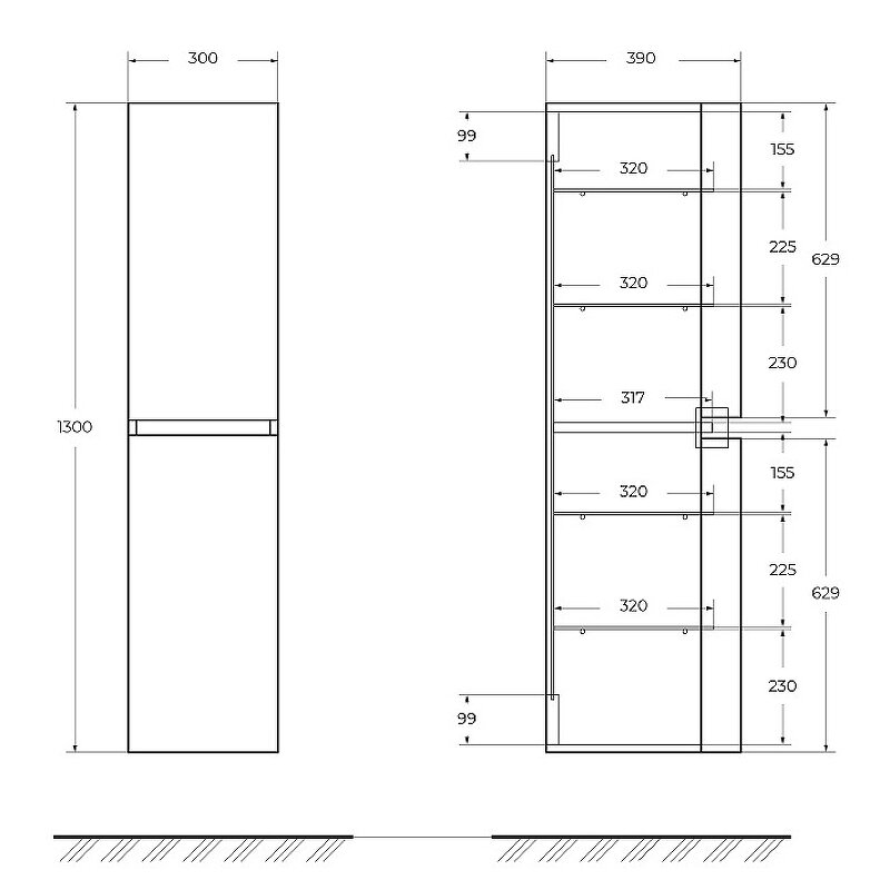 - Система хранения: две распашные дверцы, полки внутри шкафа.