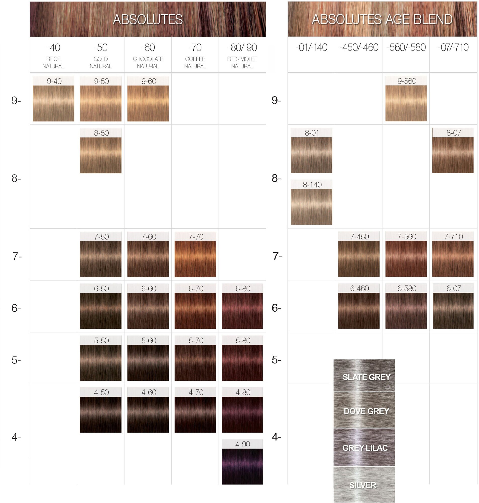 Формула перманентного красителя для седых волос Schwarzkopf Igora Royal absolutes основана на абсолютно новой технологии Biotin-S complex, работающей с двумя компонентами: витамин B7 (биотин) и кремнезем (SiO2). Биотин содержит серу, которая, благодаря своей способности защищать организм от вредного воздействия окружающей среды, замедляет процесс старения. Кремнезем восстанавливает прочность и эластичность волос. Биотин и кремнезем заполняют структурные пустоты волос, возвращая им силу и упругость, замедляют процессы старения. Краситель содержит на 30% больше красящих пигментов. 100% покрытие седины. 100% медных оттенков, 100% заботы о волосах. Благородные фешенебельные оттенки коричневого, медного, красного и фиолетового. Цвета мира доверия — это 100% покрытие седины без добавления натуральной базы.