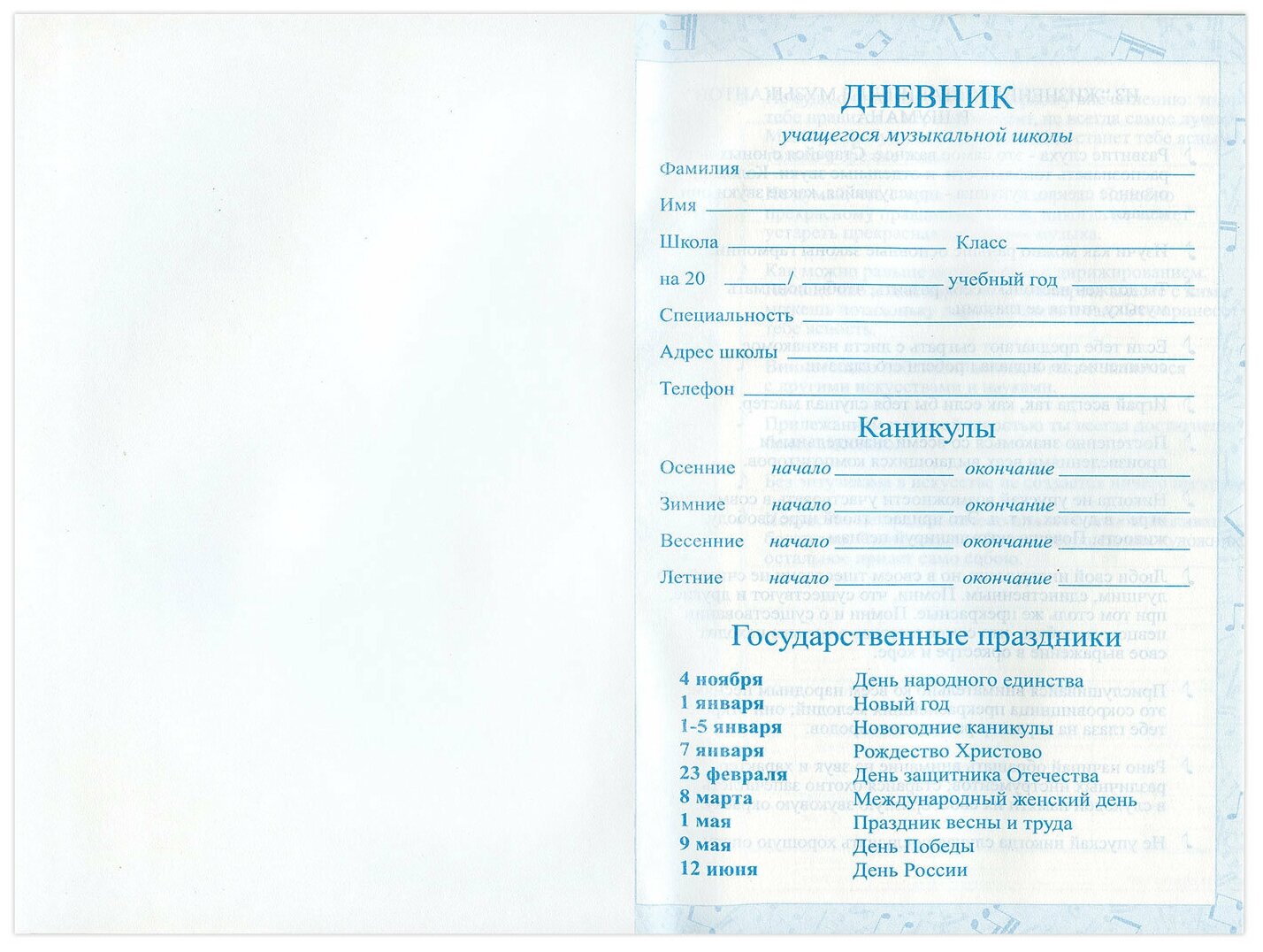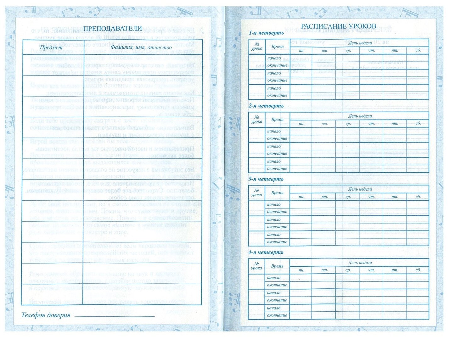 | Тип | дневник для музыкальной школы |