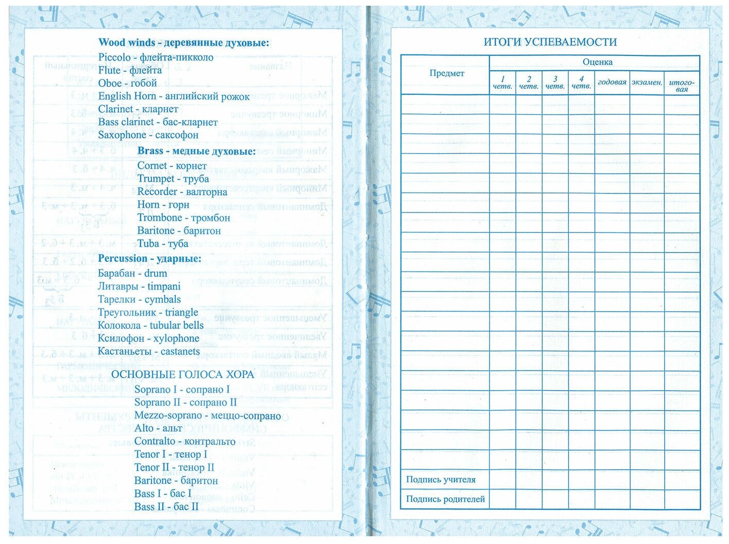 Тип товара: Дневники для музыкальной школы