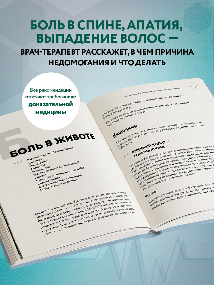 Очень понравился сам формат симптомника. Книгой очень удобно пользоваться: открываешь на своем симптоме и в одном месте читаешь, что он означает, к какому врачу идти, какие анализы сдать и как помочь себе прямо сейчас. Экономит кучу времени на поисках информации в интернете. А еще это очень выгодно, потому что больше нет смысла и желания покупать лекарства, которые прописывают всем. Обязательная книга для каждого, кто ответственно заботится о своем здоровье и самочувствии близких.