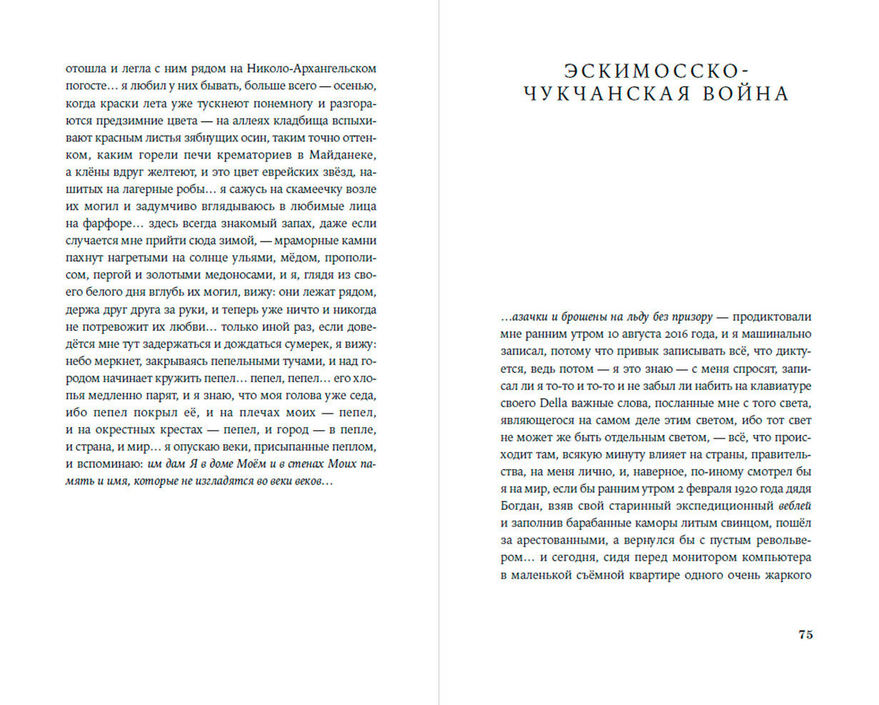 Захватывающие сюжеты книги перетекают один в другой; повести и рассказы написаны одним предложением без заглавных букв, словно фрагменты, выхваченные из потока речи. Как говорит автор, «почти все мои тексты повествуют о героях, которые растворены во времени, и на фоне их историй я пытаюсь показать, как время перетекает само в себя и повторяет само себя». Это живое, увлекающее повествование, которое будто втягивает читателя в воронку и не дает оторваться до самого конца.