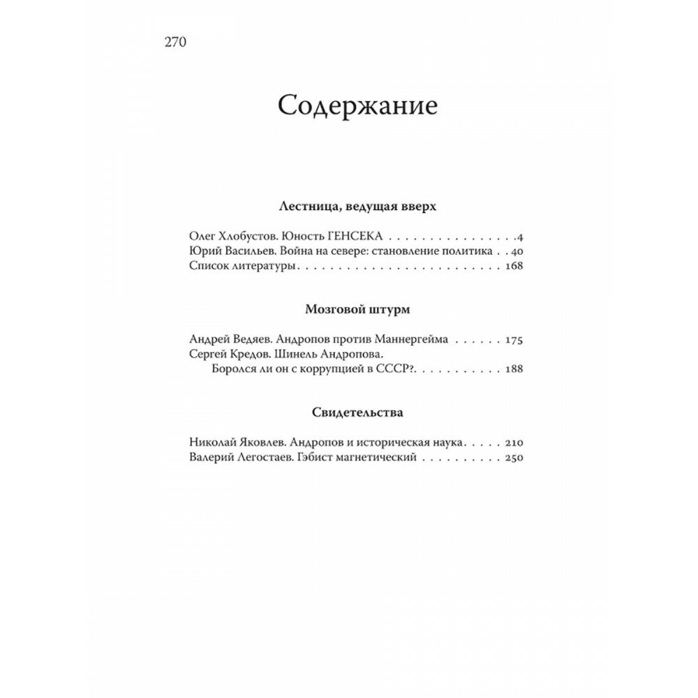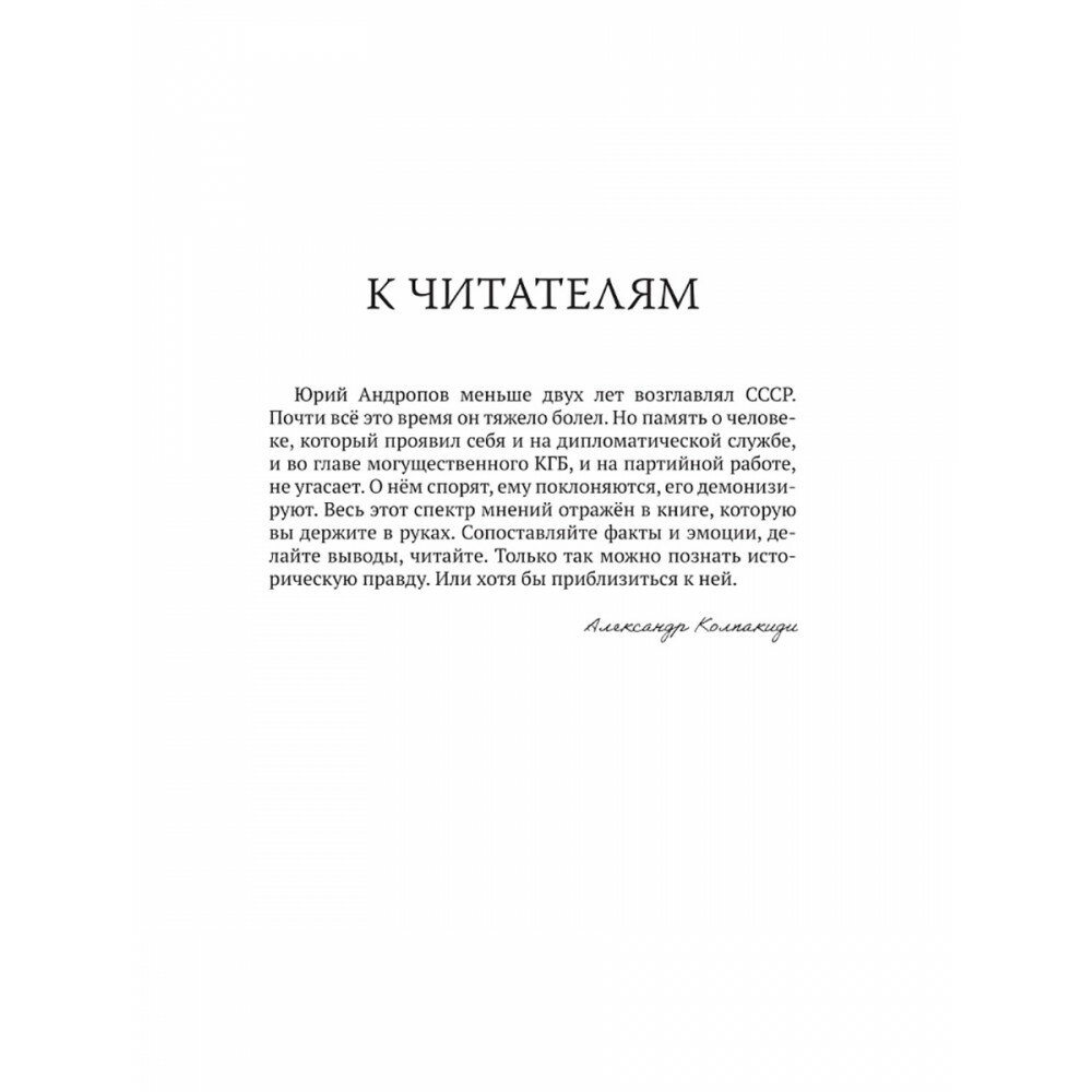 Кто такой Юрий Андропов: дипломат, чекист, партийный работник, борец с коррупцией, организатор репрессий в годы войны? Был ли лёгким его путь к верховной власти? Андропов — "воспитатель" Горбачёва? Могли ли реформы, начатые Ю. Андроповым, стать спасением для СССР? Верным ли был его подход к борьбе с алкоголизмом в стране? Между прочим, именно Андропова называют лучшим руководителем нашей страны в XX веке. И связано это с его личностью и подходом к работе. Интересный факт: результатом работы сотрудника КГБ Ю. Андропов считал не арест человека (это брак в работе), а предотвращение преступления и превращение противника в соратника. В данной книге представлены статьи, авторы которых ищут ответы на многие спорные вопросы о жизни и деятельности незаурядного человека: он занимал высший пост страны всего 15 месяцев, но заставляет говорить о себе и сегодня.
