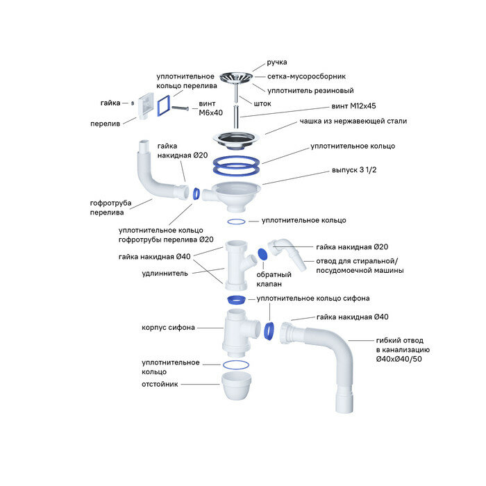 | Изготовлен из качественного полипропилена | отлично переносит воздействие воды и агрессивной бытовой химии (в т.ч. используемой для устранения засоров) |