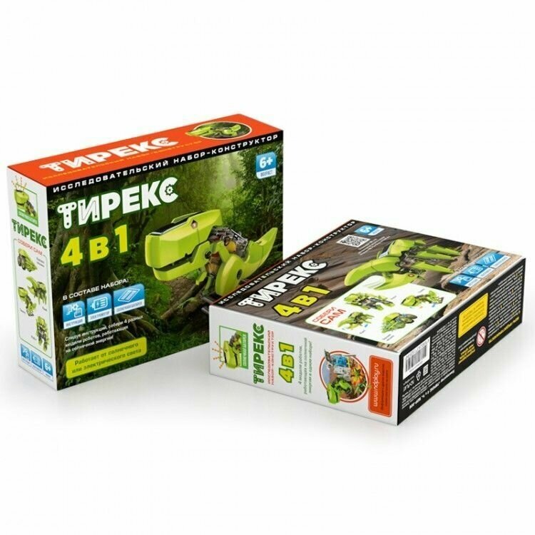 - Тирекс - Конструктор 4 в 1 на солнечной батарее. Динозавр, Краб, Буровая машина, Робот
