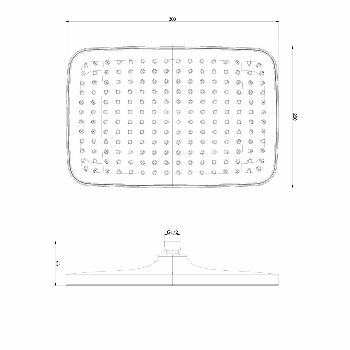 Верхний душ 1-функциональный. Функции: распыление. Размер: 300х200 мм. Цвет: хром. Преимущества: увеличенный размер лейки, мягкое распыление для более комфортного и расслабляющего душа