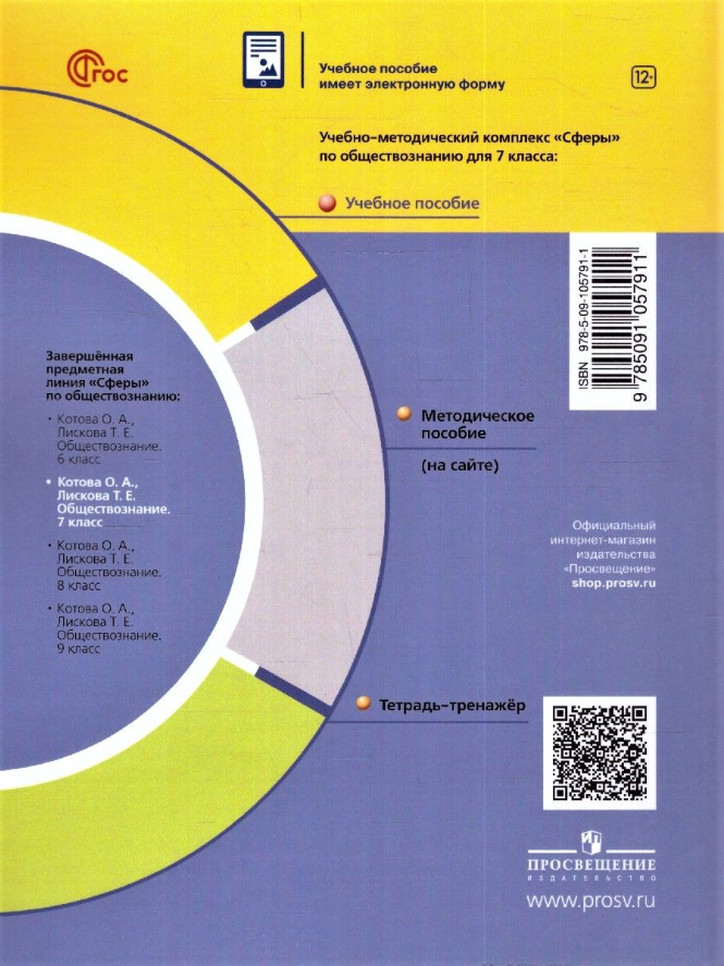 Обществознание. 7 класс. Учебное пособие. ФГОС (Котова Ольга Алексеевна, Лискова Татьяна Евгеньевна); Просвещение, 2023