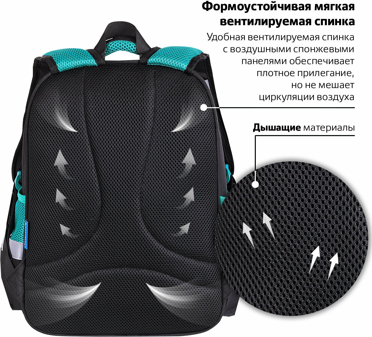 Удобная мягкая вентилируемая спинка с воздушными спонжевыми панелями разработана с учетом анатомических особенностей детей младшего и среднего школьного возраста. Рюкзак оснащен нагрудным ремешком, который снижает нагрузку на спину. В процессе эксплуатации равномерное распределение нагрузки позволит сохранить правильную осанку!