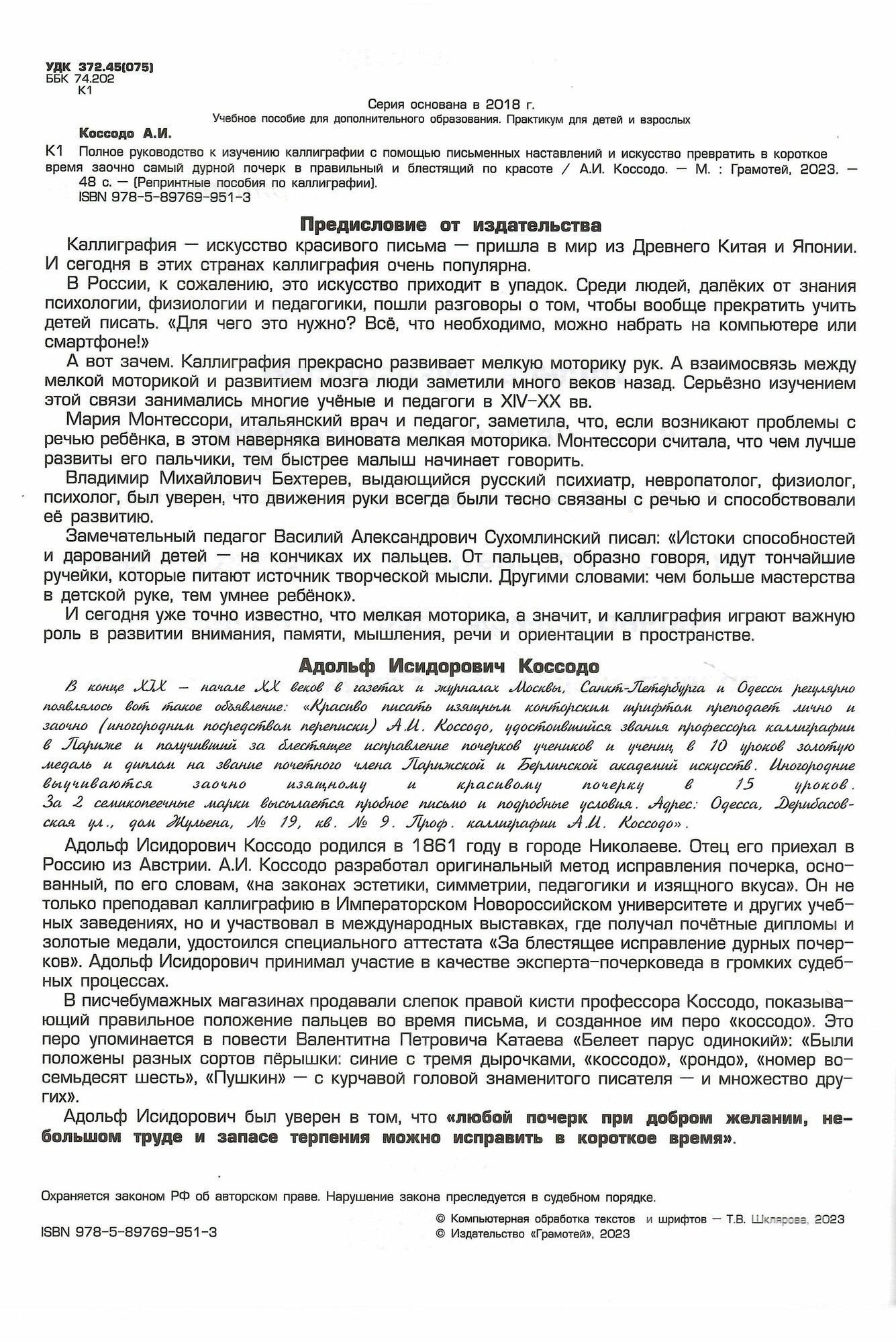 Полное руководство к изучению каллиграфии (Адольф Коссодо); Грамотей, 2023