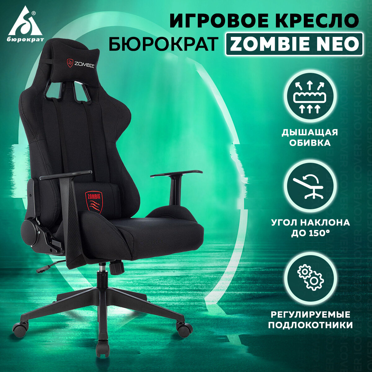 Кресло компьютерное игровое ZOMBIE NEO с обивкой из экокожи для дома, для комнаты. Подойдет как для взрослого, так и для школьника. Можно использовать как офисное. Подходит в офис или кабинет. Сочетается с любой мебелью квартиры. Модель современная для любого интерьера. Надежный корпус и долговечный наполнитель. Основа спинки и сиденья - стальной каркас. Сборный каркас сиденья из фанеры. Геймерское сиденье и спинка из экокожи высокой износостойкости. Простой уход за обивкой. Установлены механизм качания с регулировкой под вес, с фиксацией в вертикальном положении и газлифт с регулировкой высоты. Максимальная нагрузка - 120 кг. Пластиковая крестовина и колесики. Удобные анатомические подлокотники с мягкими полиуретановыми накладками регулируются по высоте, накладки поворачиваются влево-вправо и двигаются вперед-назад. С помощью игрового механизма реклайнер высокая спинка отклоняется до 150 градусов. В комплект входят две ортопедические мягкие подушки для поддержки шеи и поясницы. Производство в России. Простая сборка без лишних усилий. Прочная упаковка. Соответствует стандарту BIFMA. Вес кресла - 18 кг. Размеры: высота кресла - 124-133,5 см., высота сиденья - 45-54,5 см., ширина сиденья - 54,5 см., глубина сиденья - 51 см., высота спинки - 79 см., высота подлокотника - 17-23,5 см., диаметр крестовины - 70 см., ширина спинки - 63 см.