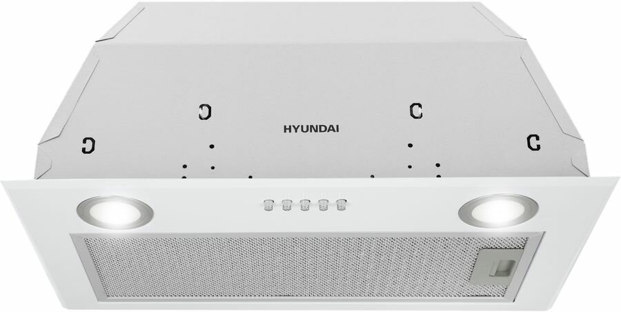 Встраиваемая вытяжка Hyundai HBB 6033 W белый, количество двигателей: 1, режим работы: отвод/циркуляция, кнопочное управление, алюминиевый жироулавливающий фильтр