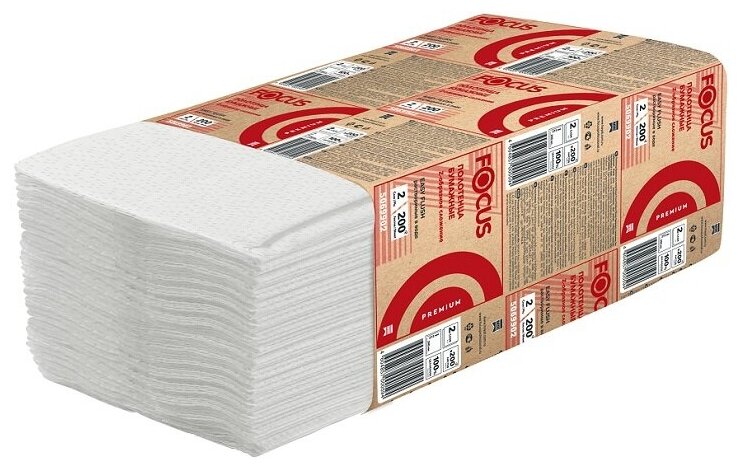Полотенца бумажные Focus Premium профессиональная 200лист. (упак.:20шт) (5069955) Для диспенсера, Premium Z, 2 слоя, 200 листов, 20 пачек