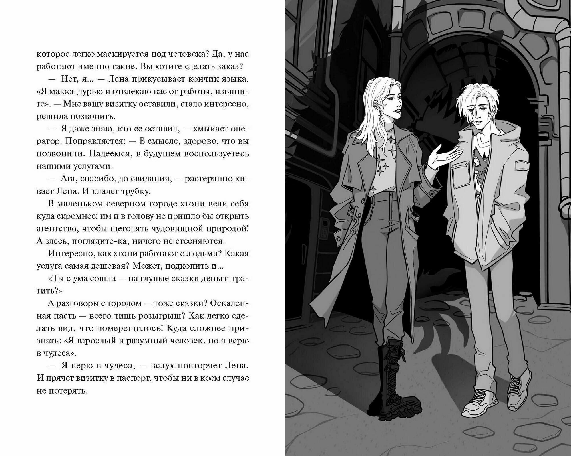 "Здравствуйте, агентство “Хтонь в пальто” слушает. Желаете заказать хтонь?"В любом городе среди людей живут хтонические существа. Они скрывают чудовищный облик под маской человеческого, общаются с мелкими духами, ловят когтями эмоции — и работают в агентстве "Хтонь в пальто". Хотите напугать друзей? Требуется няня для ершистого подростка? Не с кем выпить чаю? Вы обратились по адресу!Когда девушка-бариста находит в кофейне визитку агентства, перед ней остро встает выбор, который преследовал ее всю жизнь: продолжать притворяться, что у мира есть только человеческая сторона, или наконец признать, что хтони существуют?