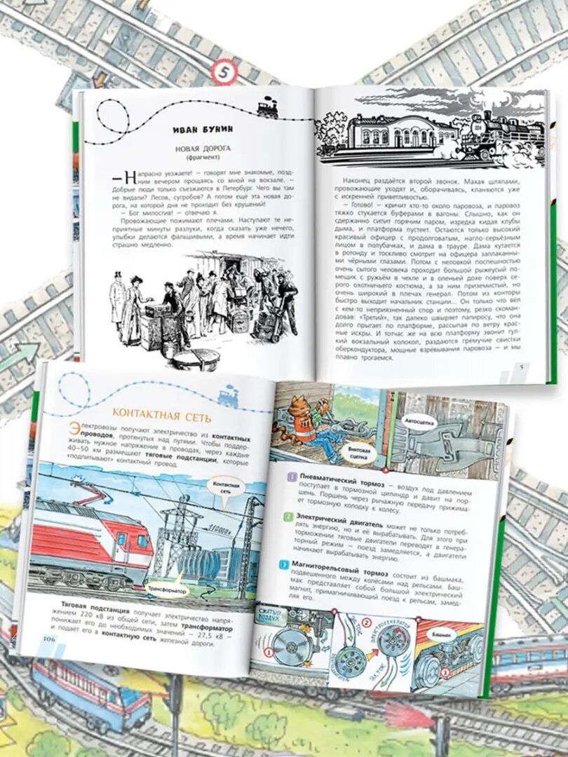 Любишь ли ты поезда? Если ответ «да», то эта книга будет тебе полезна и интересна. В ней подробно рассказано, как устроены поезда, какие они бывают, почему они так быстро ездят и о многом другом, связанном с железной дорогой. Кроме того, ты сможешь прочитать самые разные истории, из которых узнаешь, как люди относились к первым поездам, как развивались железные дороги, как поезда помогали людям во время войны.