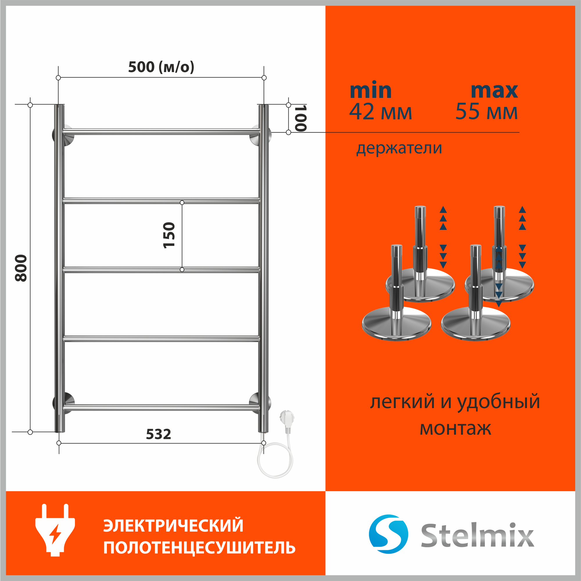 Полотенцесушитель электрический Stelmix П5 50х80 Прямая (форма) П5 500х800