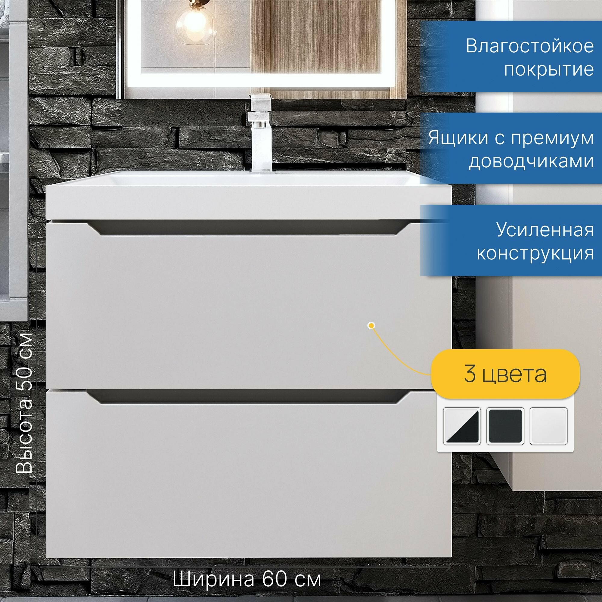 тумба под раковину Uperwood Tanos 60 см 2930205140 подвесная, белая с серым