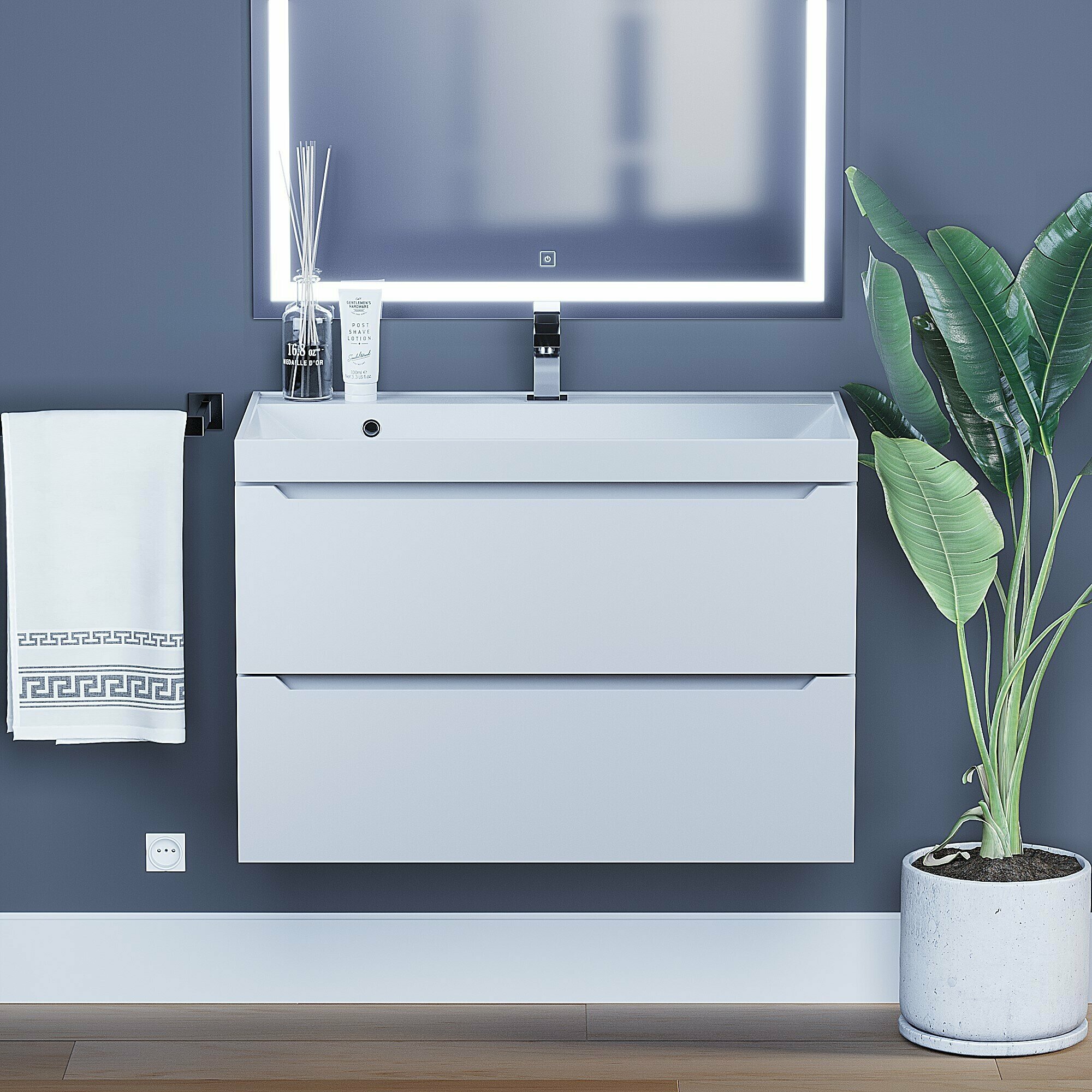 Подвесная тумба под раковину для ванной Uperwood Tanos с двумя выдвижными ящиками представляет собой функциональное, надежное и практичное решение, которое отлично впишется в любой современный дизайн ванной комнаты. Согласитесь, ведь тумба под раковину сегодня - это не просто место для хранения всех необходимых вещей в ванной, а полноценный предмет интерьера! Элегантный минималистичный дизайн тумбы дополняет ее безупречная матовая поверхность белого цвета. Подвесной монтаж изделия обеспечит легкость в уборке помещения, и визуально даст больше пространства Вашей ванной комнате. Фасад и боковые стенки изделия, выполненные из МДФ, покрыты эмалью Hesse (производство Германия). Толщина МДФ 16 мм. Выдвижные ящики изготовлены из влагостойкой ЛДСП. Ящики оснащены доводчиками. Вся фурнитура и доводчики Hettich, производство Германия. Размерный ряд тумб под раковину Tanos представлен моделями от 60 до 100 см, для того, чтобы каждый покупатель смог подобрать для себя оптимальный размер изделия. Тумба поставляется в собранном виде, в комплект входит крепеж для подвесного монтажа. Раковина Andrea Classic для тумбы приобретается отдельно.