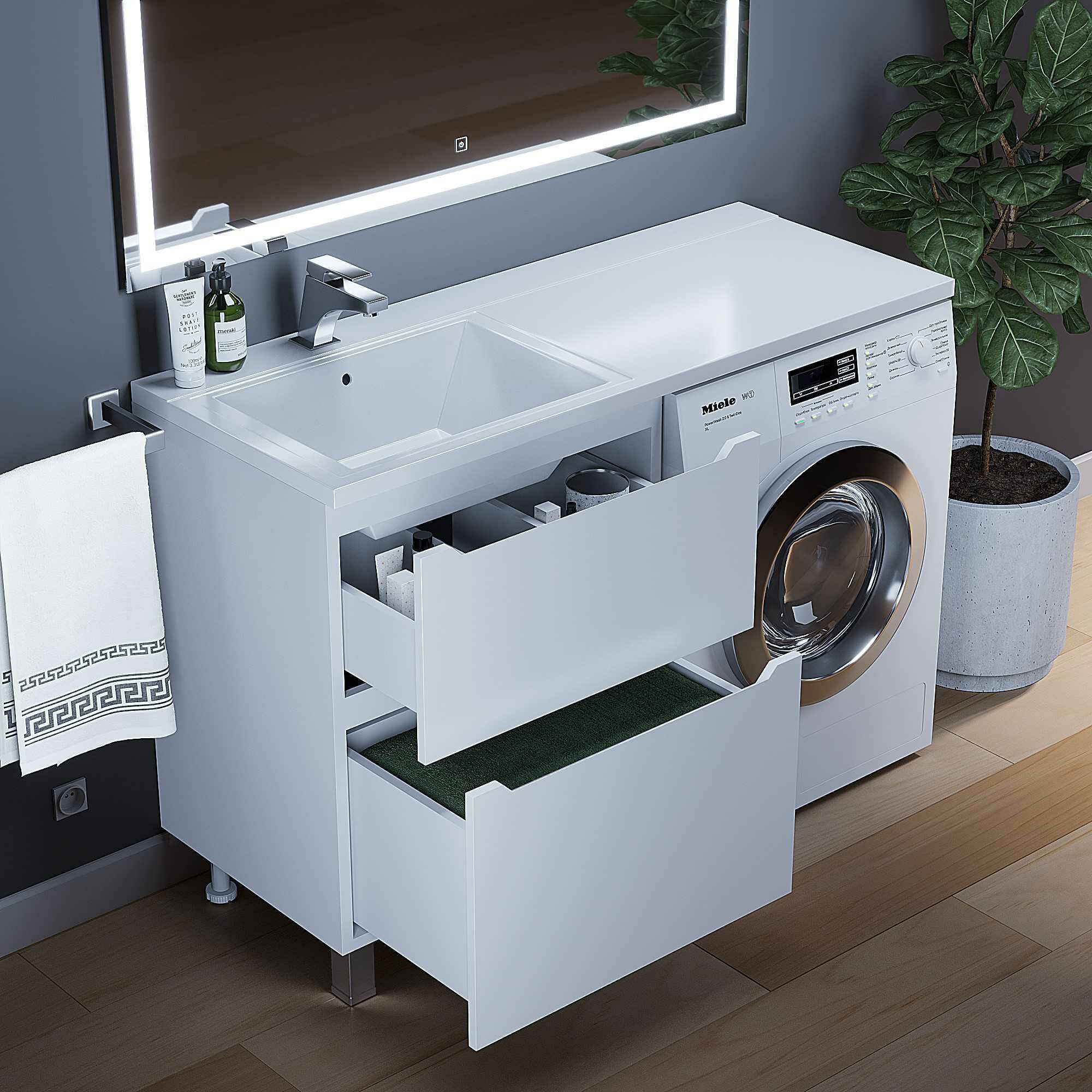 Тумба под раковину для установки со стиральной машиной Uperwood Tanos с выдвижными ящиками представляет собой функциональное, надежное и практичное решение, которое отлично впишется в любой современный дизайн ванной комнаты.Элегантный минималистичный дизайн тумбы дополняет ее безупречная матовая поверхность.Фасад и боковые стенки изделия, выполненные из МДФ, покрыты эмалью Hesse (производство Германия). Толщина МДФ 16 мм.Выдвижные ящики изготовлены из влагостойкой ЛДСП. Ящики оснащены доводчиками. Вся фурнитура и доводчики Hettich, производство Германия.Размерный ряд тумб под раковину Tanos представлен моделями 60 см.Для тумб Tanos подходит раковина Cosmos или раковина Bruks шириной 120 см. Под "крыло" раковины устанавливается стиральная машина.Тумба поставляется в собранном виде, в комплект входят ножки для напольного монтажа и крепеж.